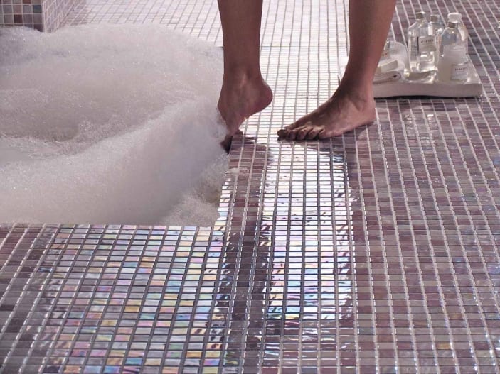 Mosaique de piscine typique conçue pour les zones humides ou pour les salles de bain.