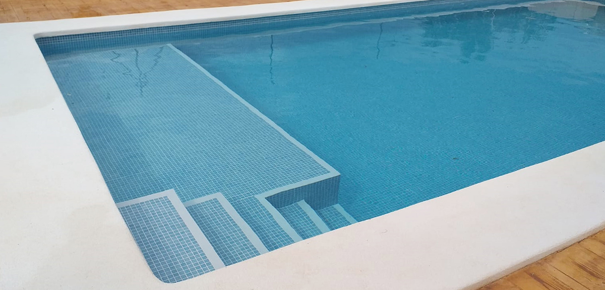 Mosaïque piscine typique conçue pour les zones humides ou pour les salles de bain.