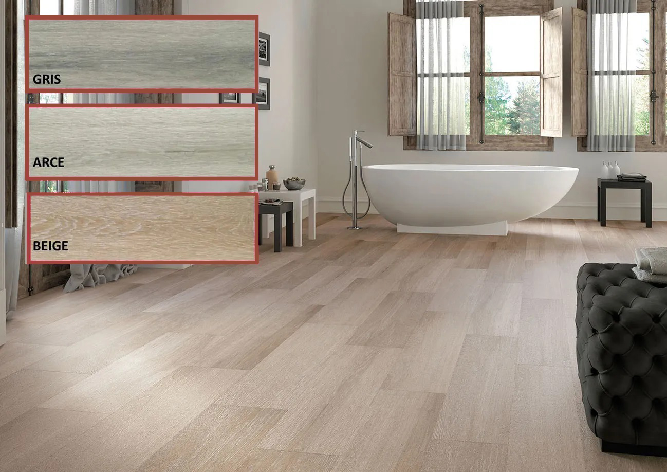 La série NICOLE est un carrelage Pâte Rouge imitation parquet avec une finition mate. Format 20,5×61,5.