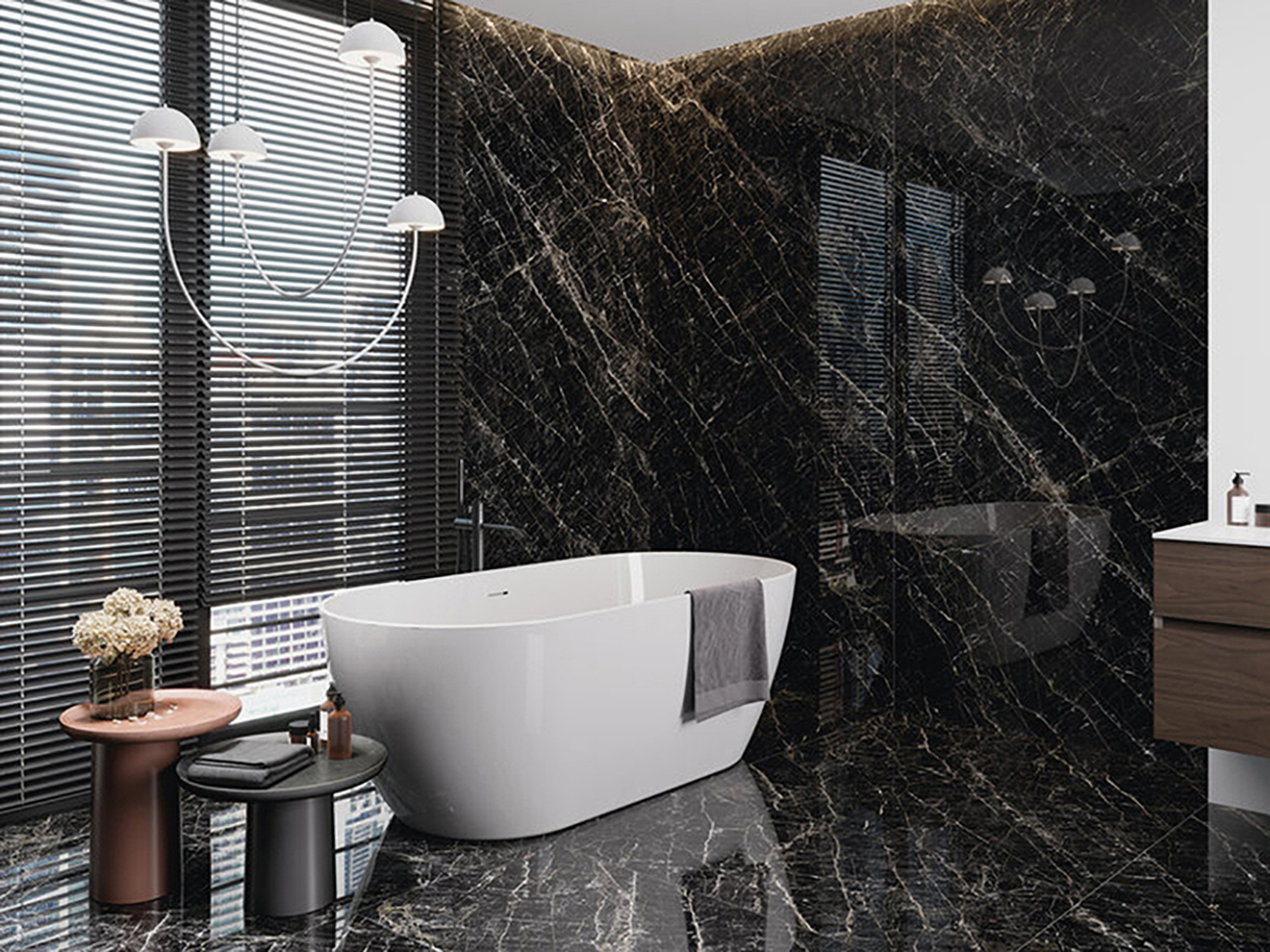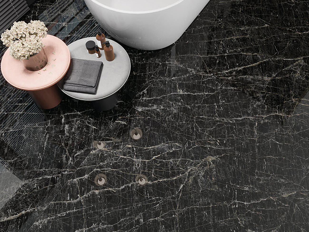 Outre son apparence spectaculaire, le grès cérame Absolute est conçu pour être hautement résistant, garantissant sa durabilité même dans les zones de fort passage.