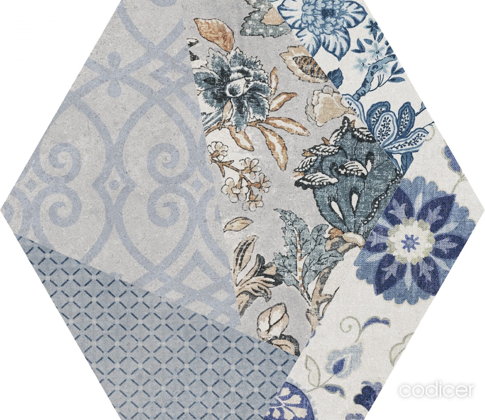 Série ANAIS. Imitation de carreaux de ciment en grès cérame aux format hexagonaux 25×25, présente une finition mate.