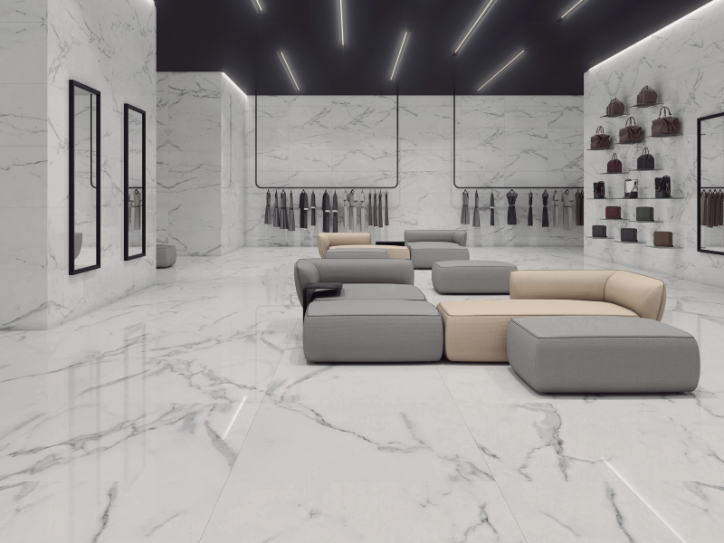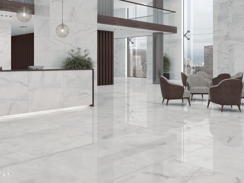 La Série ARTISTIC est un carrelage en grès cérame imitation marbre, avec finition brillante et disponible en plusieurs formats, parfait pour mur et sol