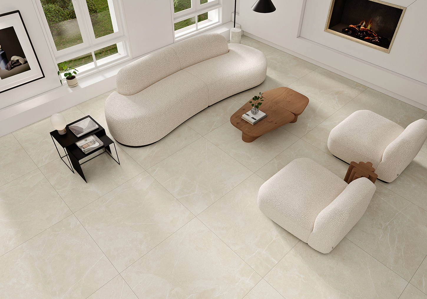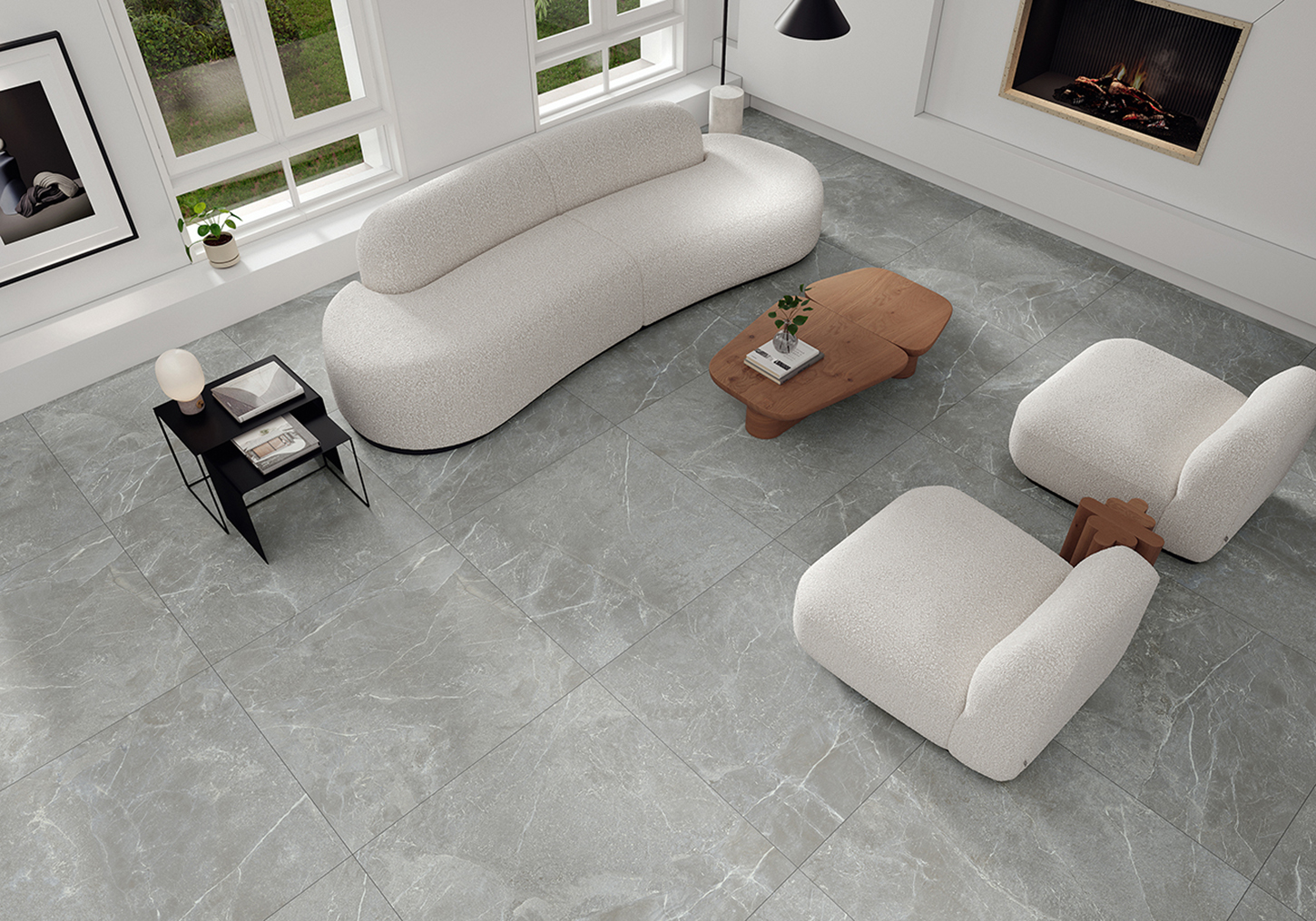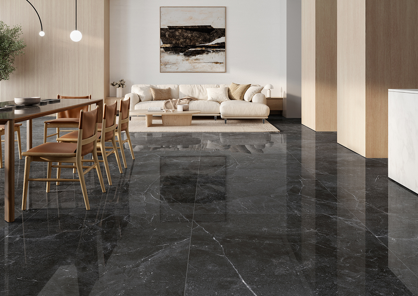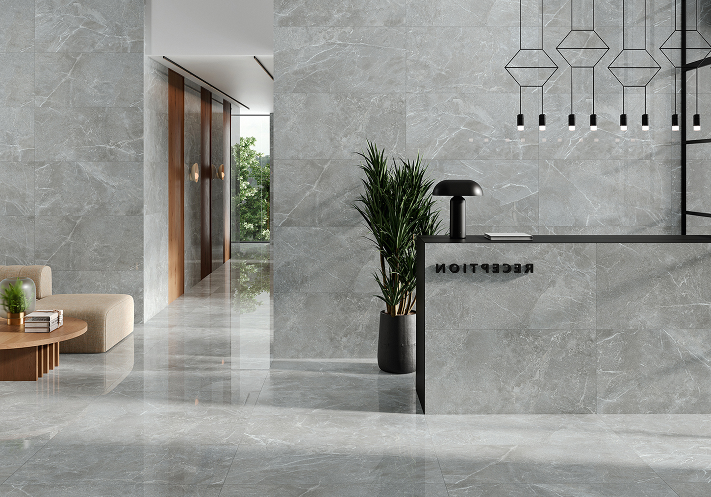 Les carreaux sont disponibles en trois finitions : Poli, Satiné, Mat.