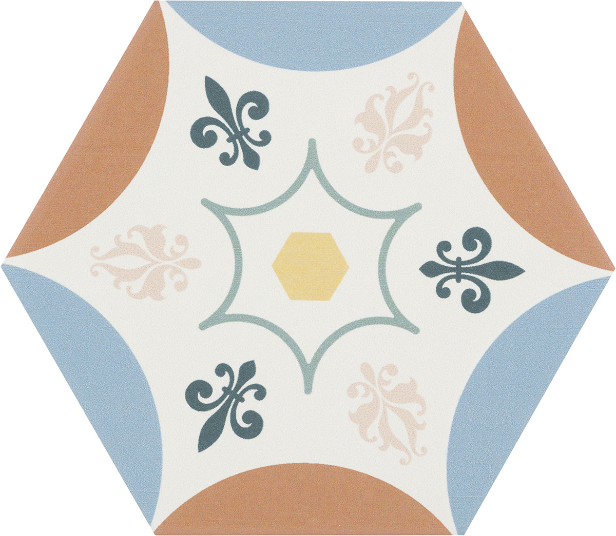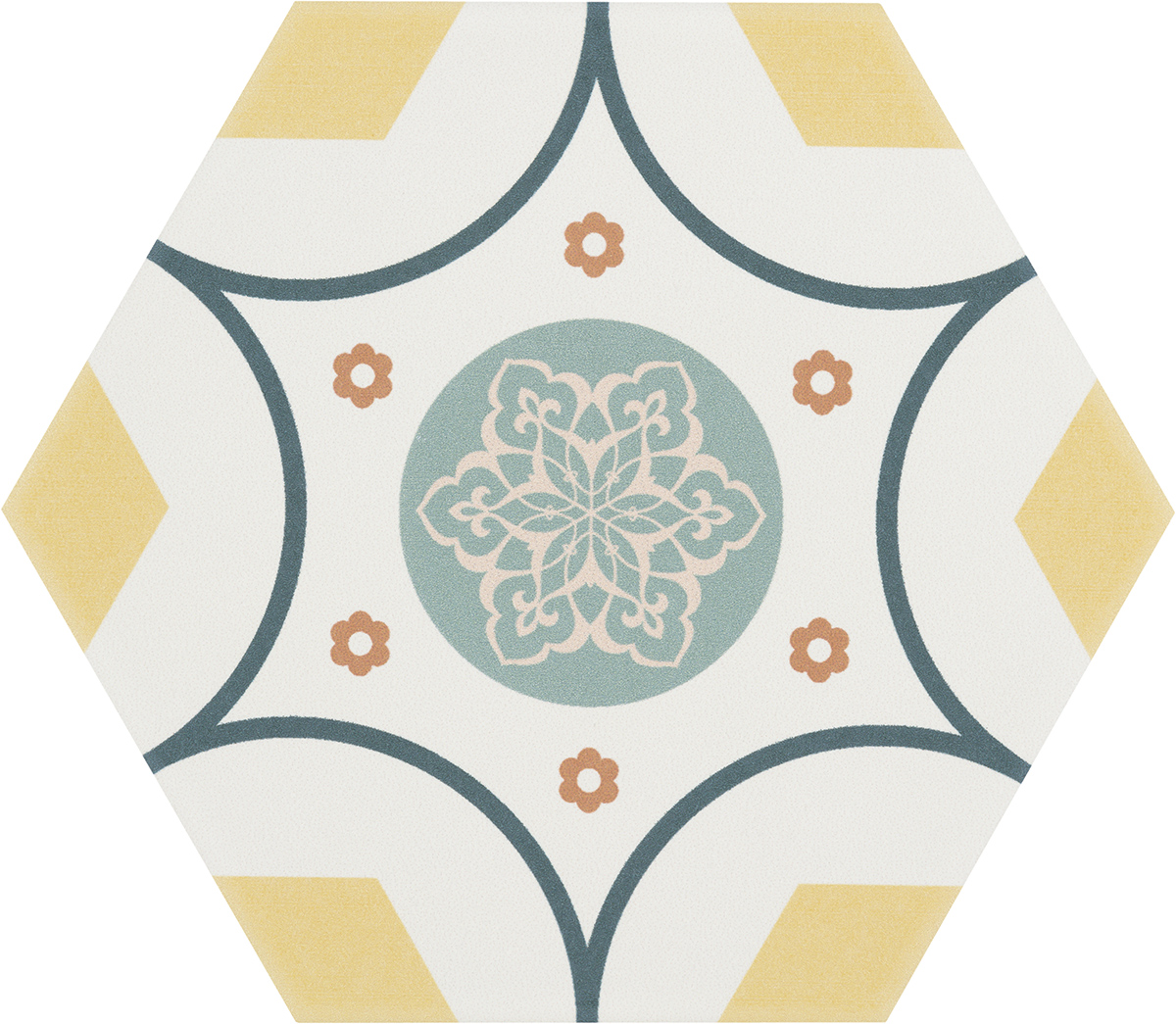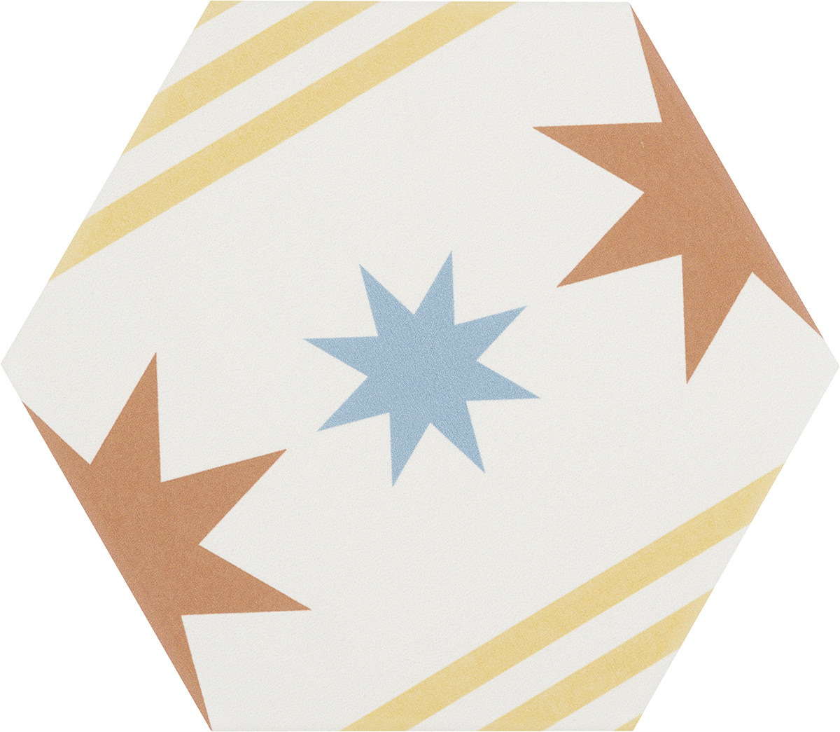 La Série BOOM un carrelage en grès cérame effet carreau de ciment en format 14×16 hexagonal, avec une finition mate et disponible dans plusieurs couleurs: