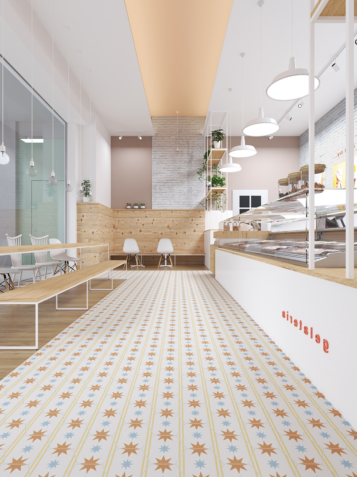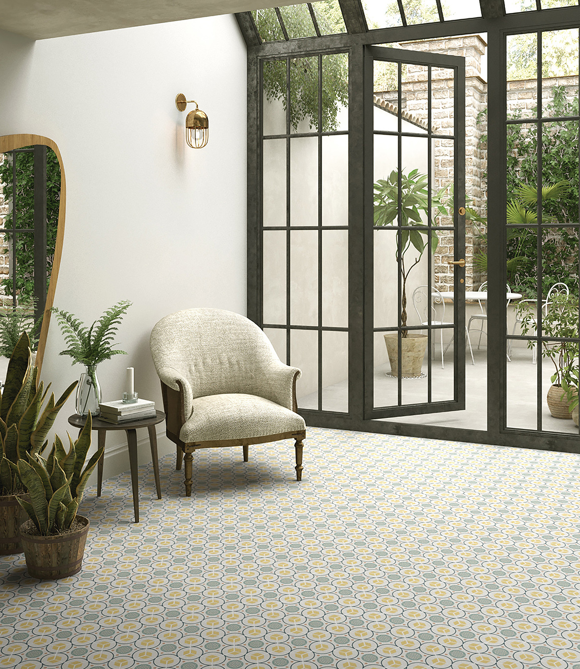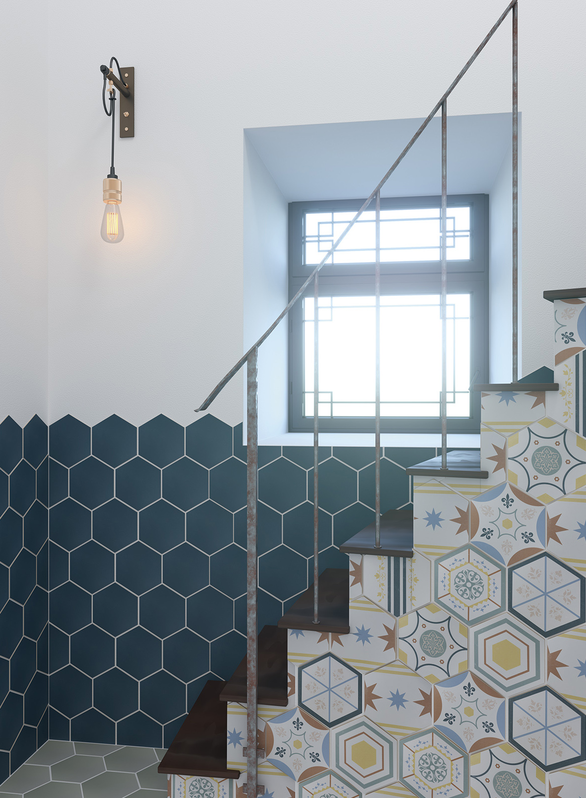 La Série BOOM un carrelage en grès cérame effet carreau de ciment en format 14×16 hexagonal, avec une finition mate et disponible dans plusieurs couleurs: