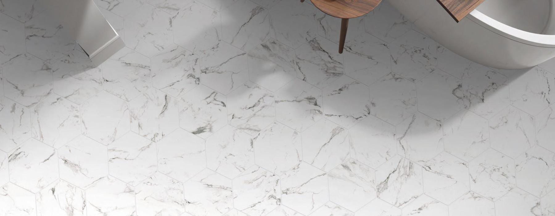 La série CALACATTA COD est un grès cérame effet marbre disponible en différents formats ( 25×25 – 22×25 hexagonal), avec une finition mate.