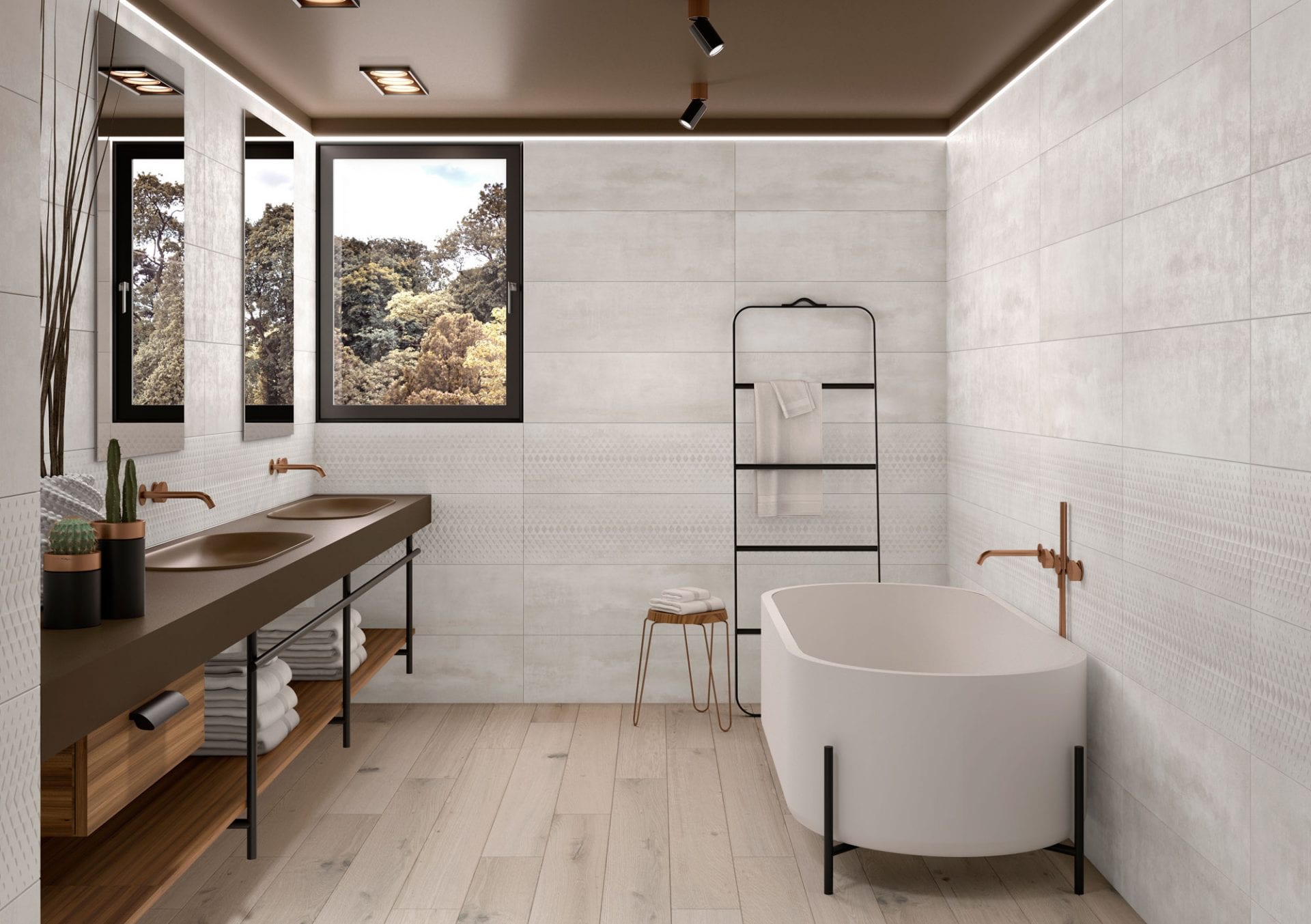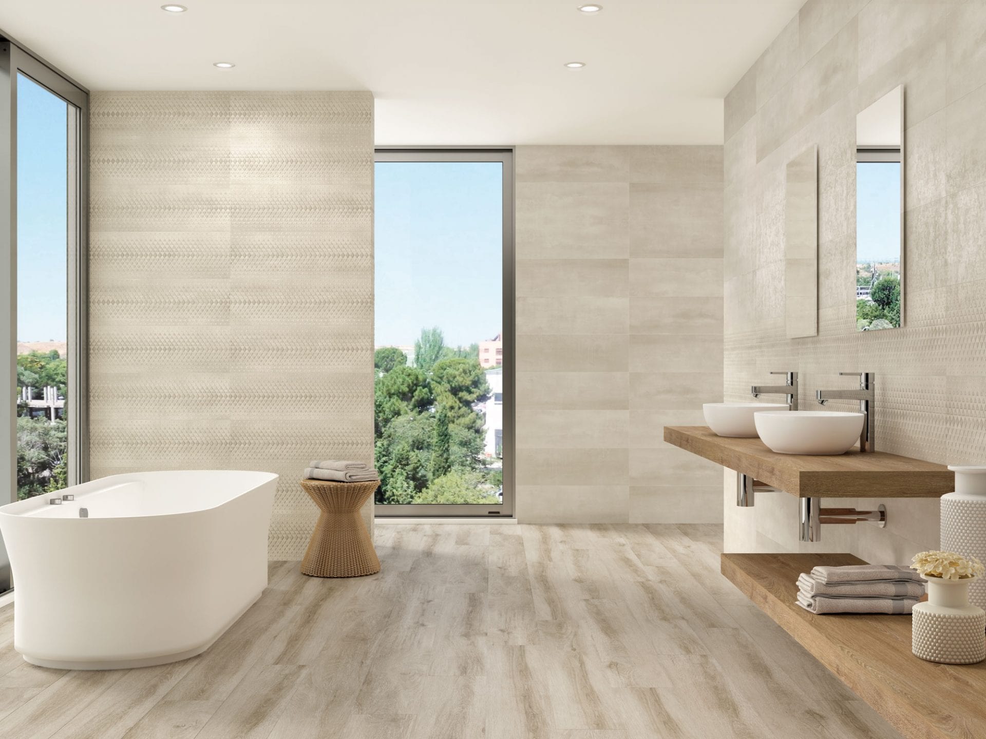 La série CHANNEL est un un carrelage en pâte blanche rectifié pour le revêtement de mur intérieur. Il est disponible au format 30×90 et a différentes bases et décorations assorties.