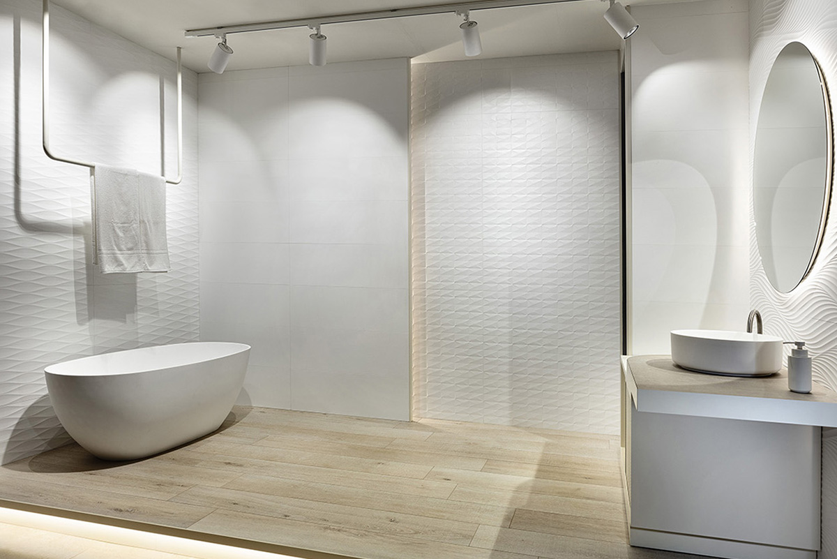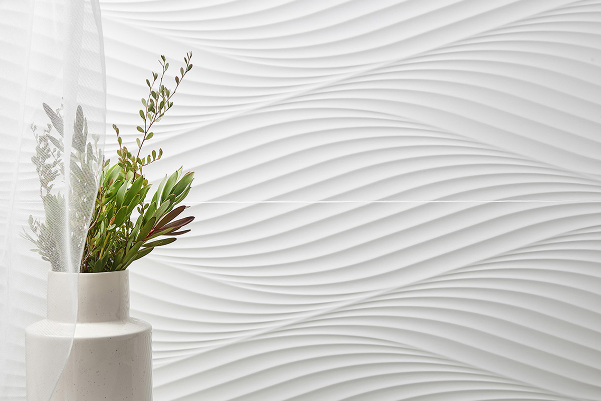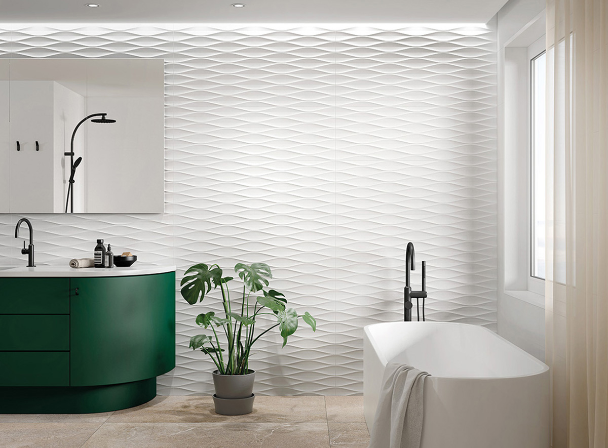 Plus blanc et plus doux. De nouvelles techniques de production nous ont permis d’atteindre un niveau de blancheur jusqu’ici impossible à obtenir, ainsi qu’une douceur supérieure très recherchée dans les matériaux que nous avons à portée de main. C’est pourquoi notre collection Cotton est une solution idéale pour tout projet où l’on recherche la chaleur et l’amplitude visuelle de l’espace. Le décor Diamond simule un losange adouci avec des lignes organiques. Avec Waves, nous avons ces formes sinueuses des vagues de la mer. Douces et dynamiques, elles créent des espaces avec un mouvement apaisant. Fold est une proposition décorative qui nous transporte aux pliures de matériaux malléables tels que l’argile, le papier ou le métal. Dans ce cas, il nous offre une sensation de trompe-l’œil en évoquant des formes impossibles à réaliser sur un matériau aussi dur et résistant que la céramique.