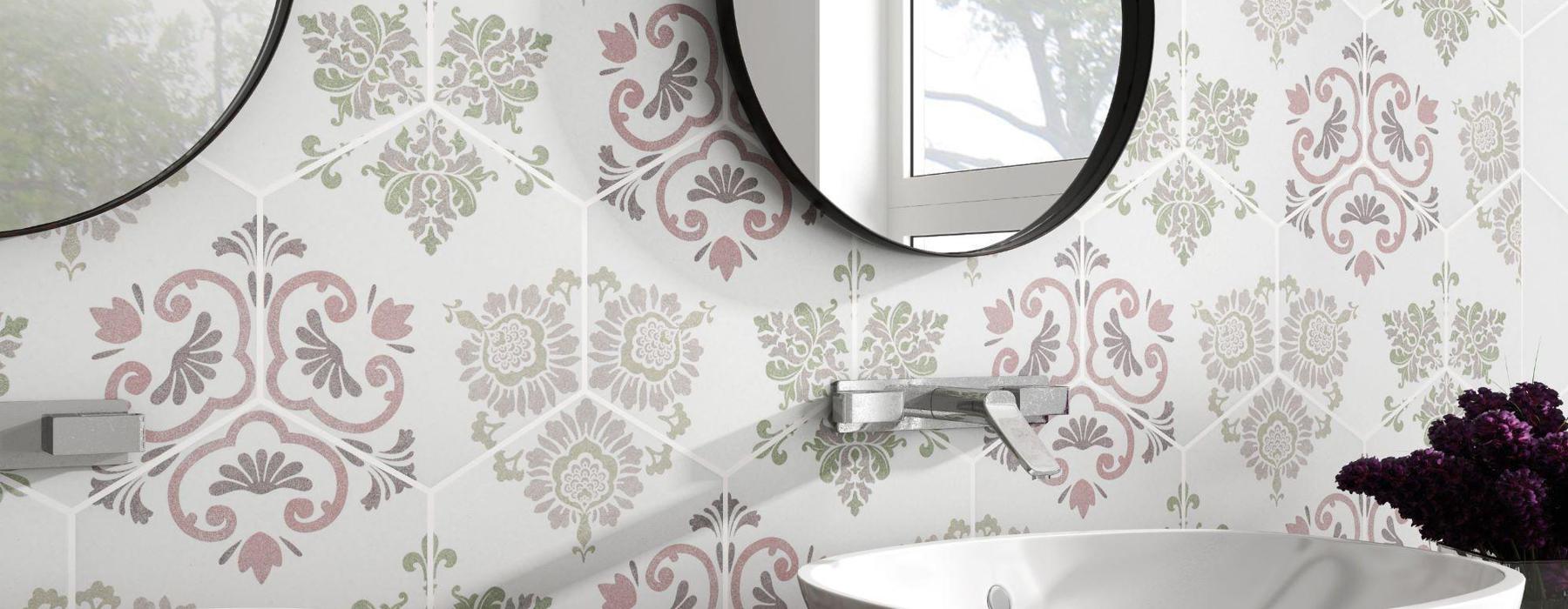 La série FANTASY SPRING MIX et PINK est un grès cérame de type ciment au format hexagonal 22×25.