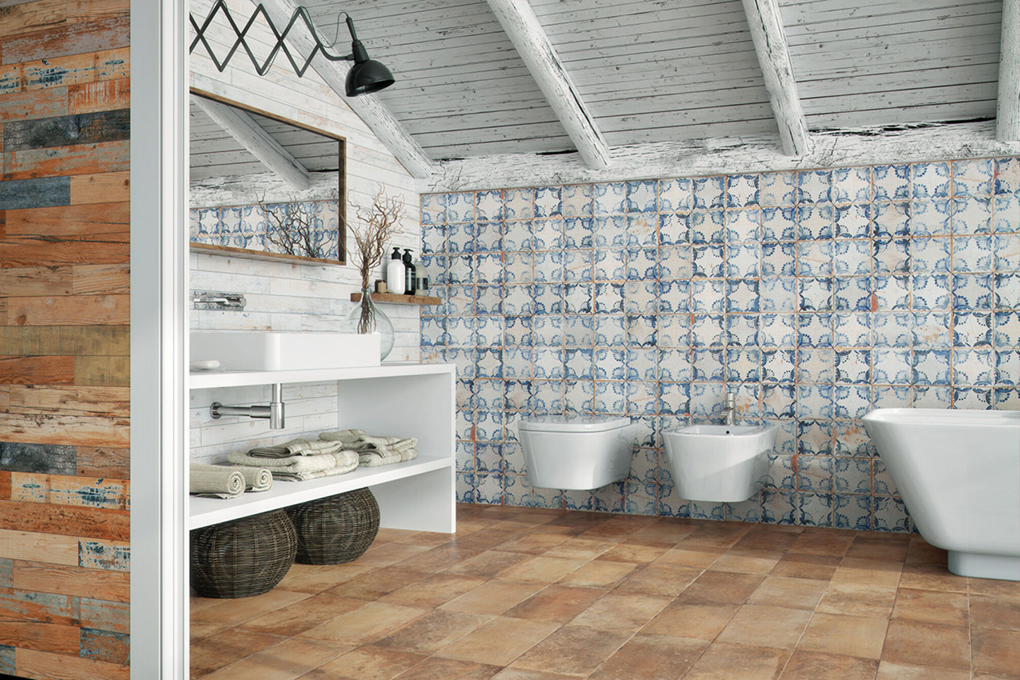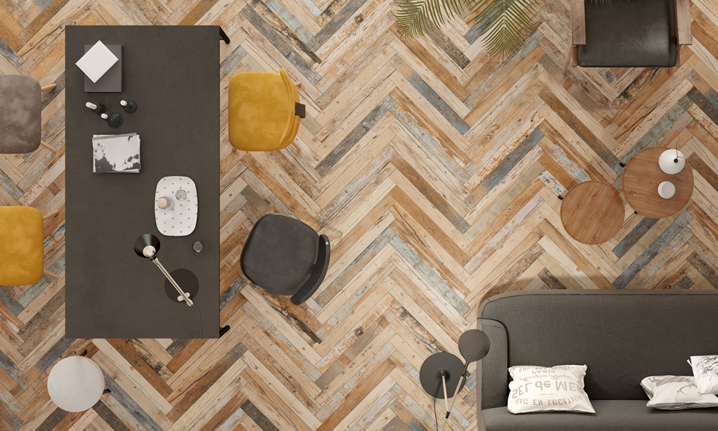 La collection FS MELVIN de Francisco Segarra pour Peronda est un hommage au style vintage et industriel, revisité avec une touche fraîche et originale. Sous forme de lattes de 7,4×67,5 cm et avec une finition naturelle, cette collection de bois peints et usés par le temps est disponible en deux teintes : multicolore et blanc. FS MELVIN est idéale pour des installations créatives, y compris des agencements en chevron, apportant un charme rustique et contemporain à tout espace.