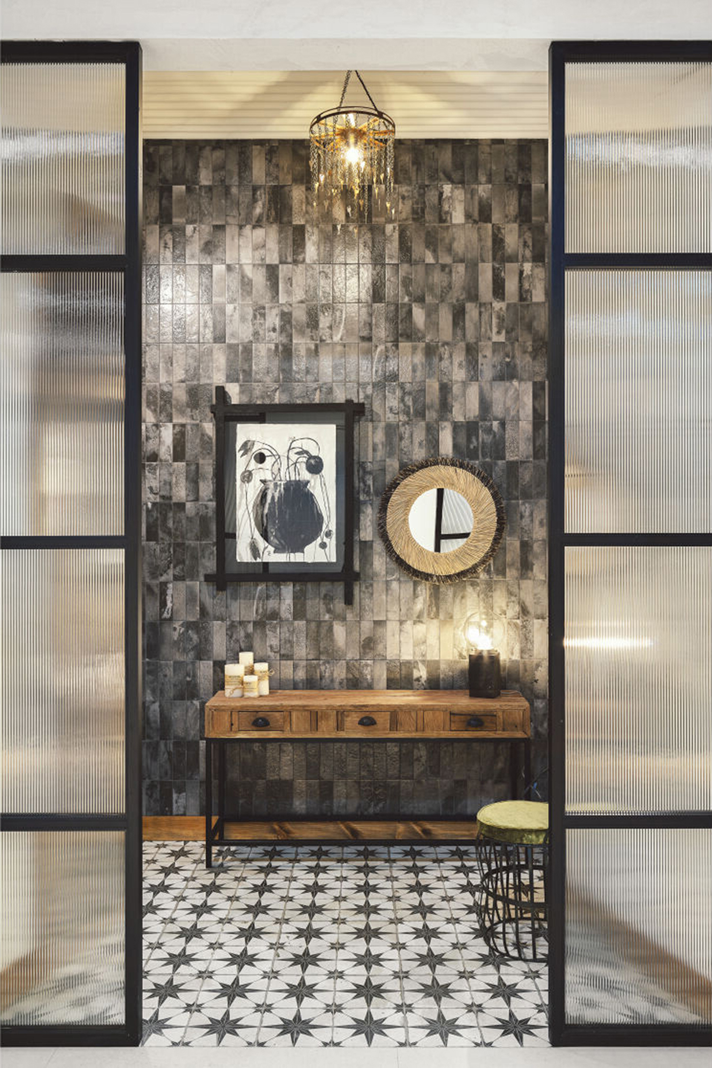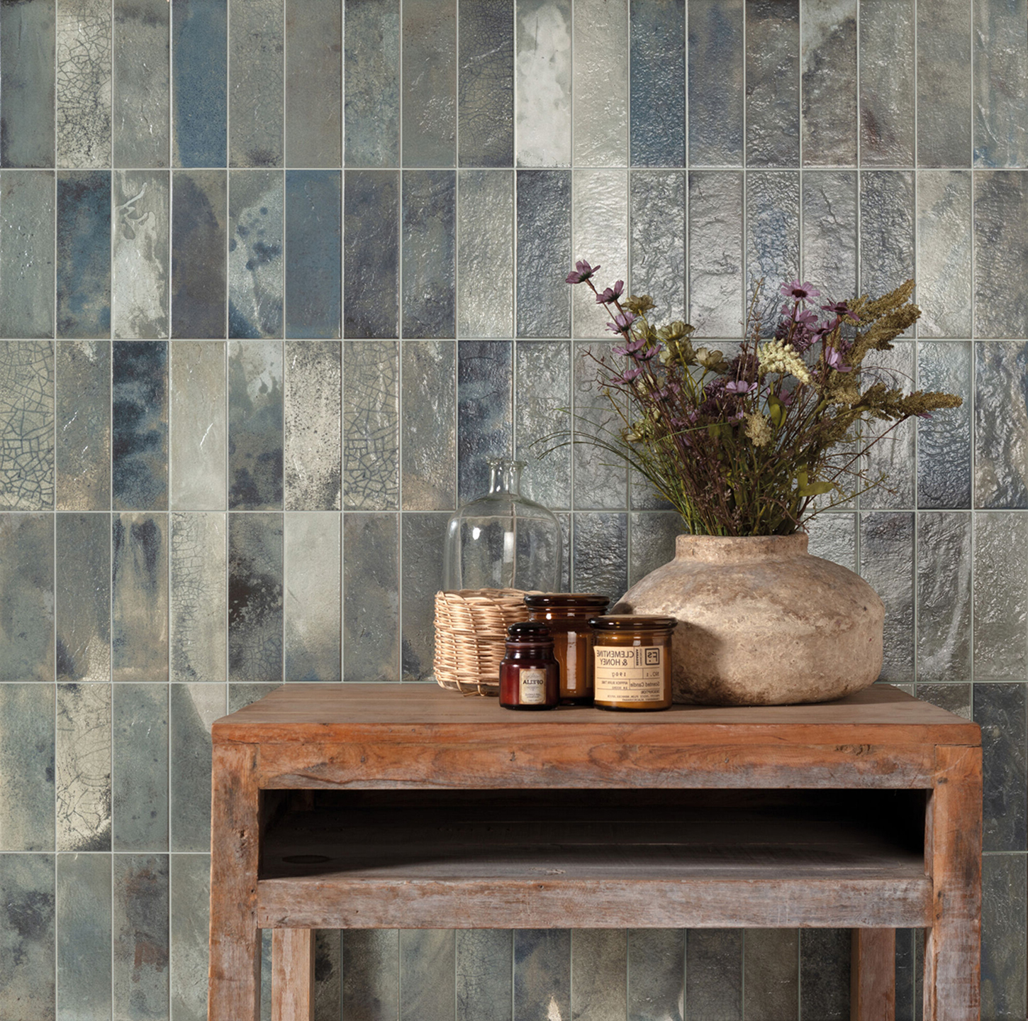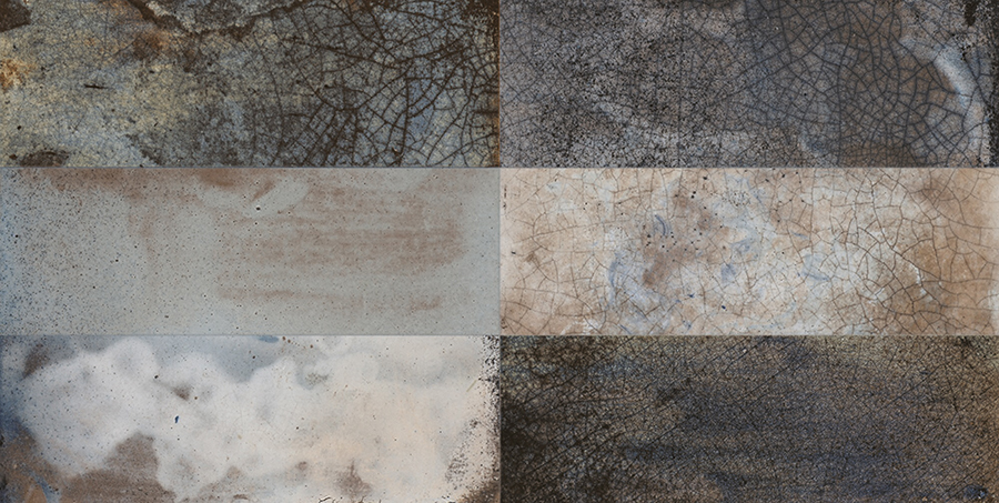 Chaque pièce, au format 20×40 cm et avec une épaisseur de 10,3 mm, reproduit fidèlement les caractéristiques esthétiques du Raku, des émaux métalliques aux craquelures et variations de couleur qui surgissent naturellement pendant le processus de combustion. La finition naturelle de ces carreaux reflète une surface riche en textures et en nuances, chacune racontant sa propre histoire visuelle.
