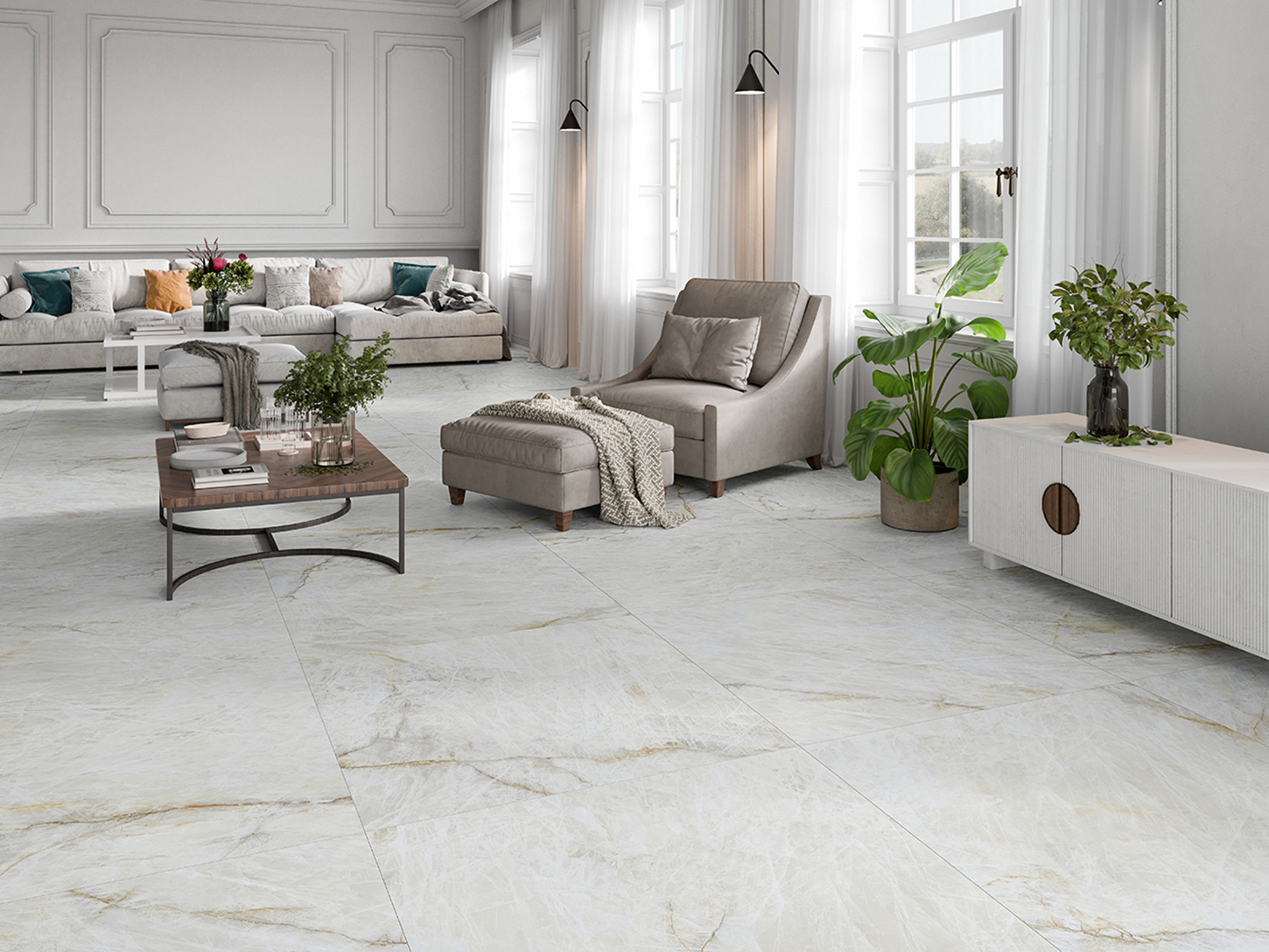 La Série Gemstone est une collection de carreaux en porcelaine rectifiés imitation marbre mat, conçue pour créer des intérieurs élégants et sophistiqués. Disponible en formats 100×100 cm et 60×120 cm, cette série capture l’essence du marbre naturel avec une finition moderne et douce, apportant une sérénité à tout espace.