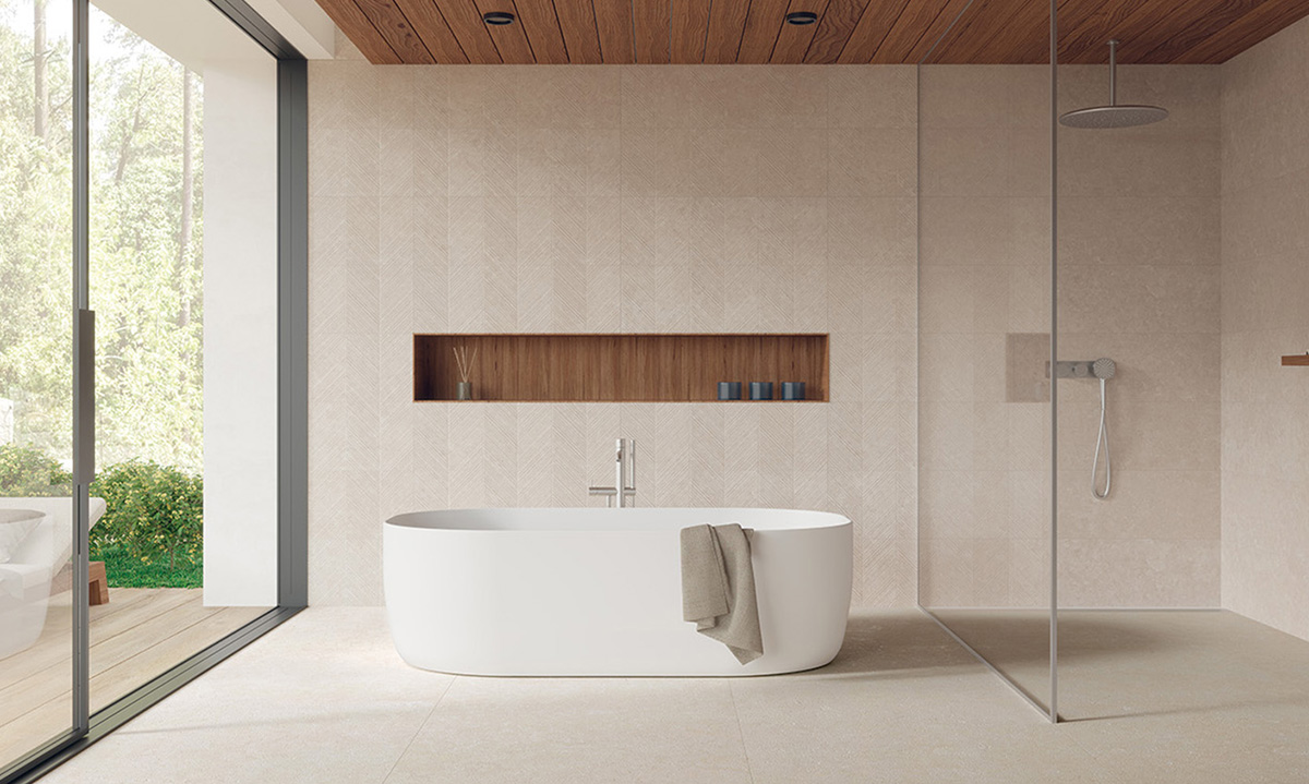 Ghent présente, dans sa version 4D, le plus grand format de la marque à ce jour : 100×260. Des espaces continus, sans joints, avec la dernière technologie d’impression céramique, Shaped Tech en grand format. Les formats 100×180 et 100×100 sont également proposés pour créer des espaces parfaitement coordonnés en termes de tailles sol-mur, générant un joint continu qui permet d’apporter la perfection esthétique au moindre détail.