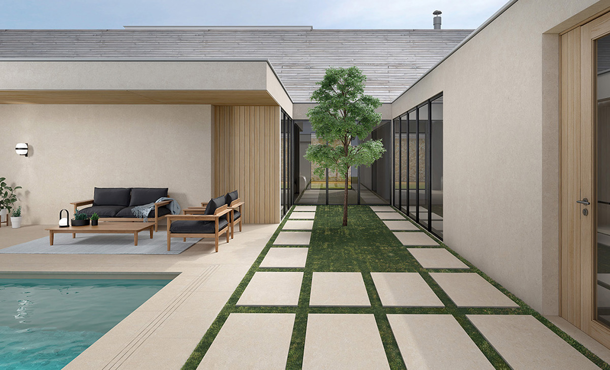 La collection est un calcaire travaillé dans les tons blanc, argent, beige et gris, nous permettant de voyager dans le temps, car on y trouve des vestiges fossiles et salins qui ajoutent une grande richesse esthétique à la collection. Cette graphique, dans sa finition antidérapante de 100×100 en 8 mm, est parfaite pour une utilisation en extérieur en coordination avec le revêtement intérieur, créant des espaces vastes et continus. La collection Ghent est complétée par l’ajout du produit le plus robuste de la marque à ce jour : l’épaisseur de 20 mm. Disponible dans les 4 couleurs de la collection, c’est la solution parfaite pour une utilisation en extérieur en raison de son épaisseur et de ses formats de 100×100 cm et 50×100.