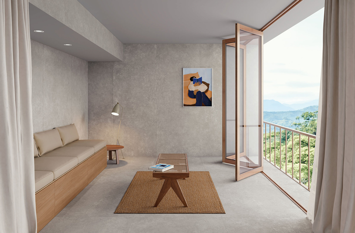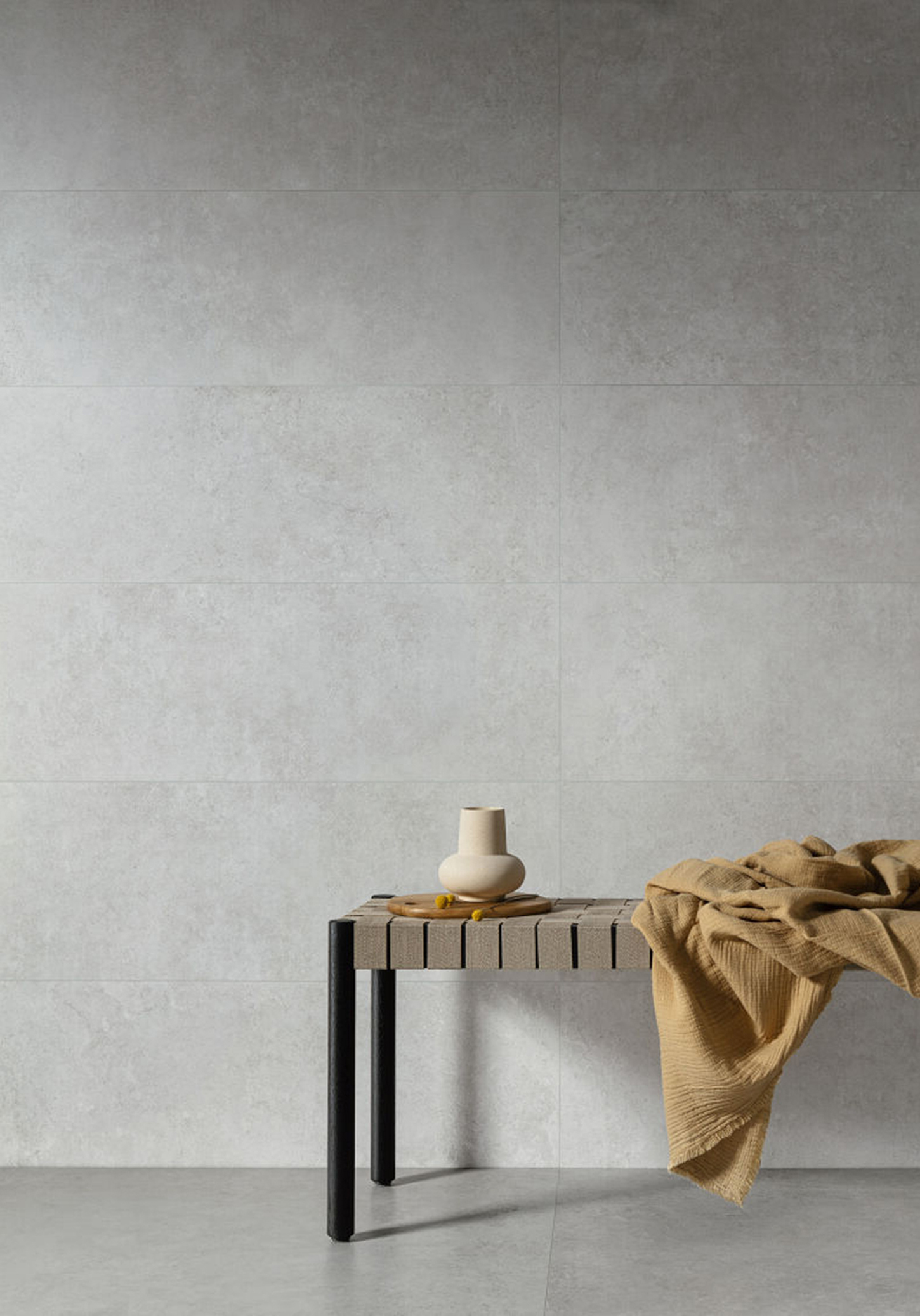 L’utilisation de la technologie Shaped Tech a permis de reproduire les subtiles imperfections et les caractéristiques salines visibles dans le béton traditionnel, ajoutant un niveau de détail qui élève le matériau au-delà de la simple imitation. Cette technologie améliore non seulement la texture et l’apparence visuelle du grès cérame, mais contribue également à la création d’espaces plus vastes et lumineux grâce à son fini continu et à ses couleurs uniformes.