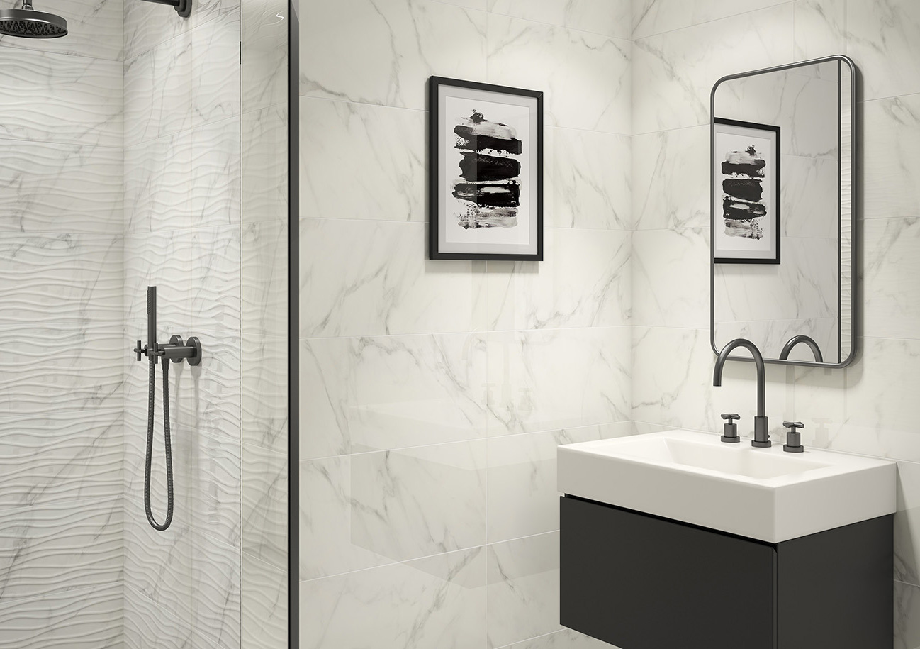 La série IRVINE est un carrelage en Pâte Rouge imitation marbre avec une finition brillante. On peut le trouver pour les murs au format 30×60. Il a des décorations pour chaque couleur.