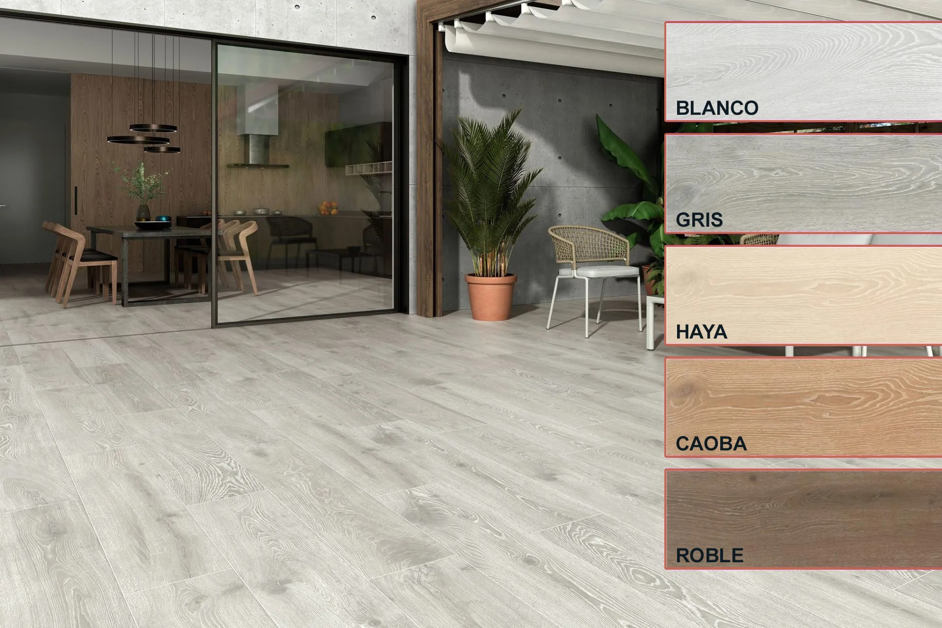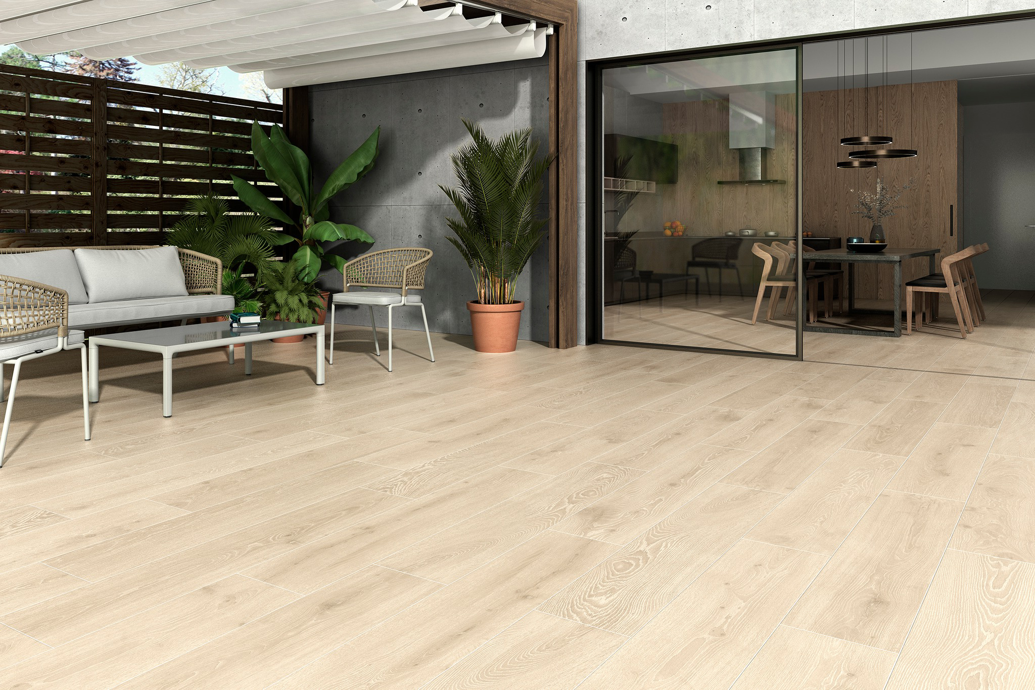 Cette série présente la finition SLIPSTOP, qui convient à la fois aux intérieurs et aux extérieurs grâce à sa texture lisse mais en même temps antidérapante et facile à nettoyer.