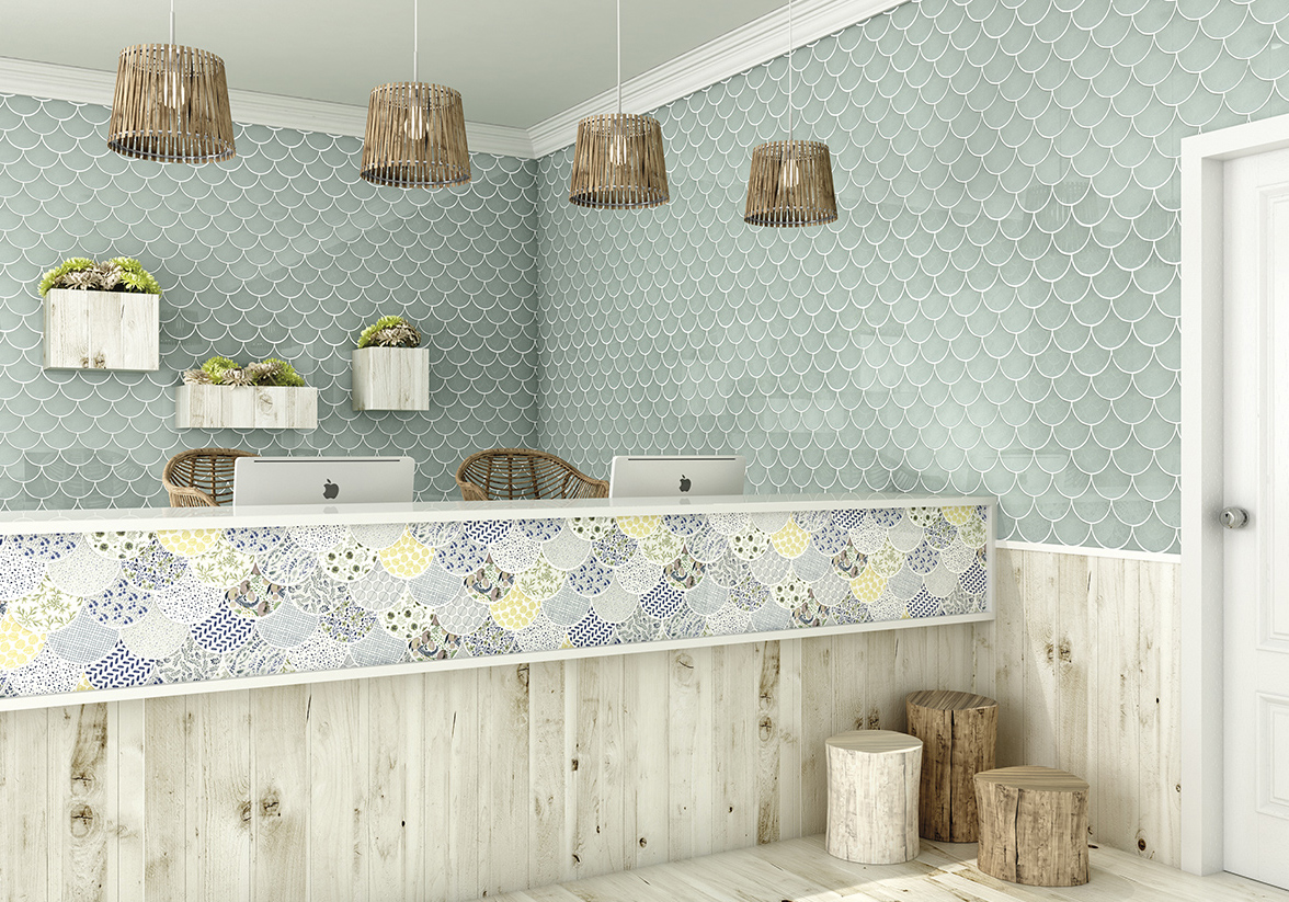 La Série JAZZ est un carrelage en pâte blanche en forme d´écaille de poisson de 15×13,5, disponible en plusieurs couleurs avec une finition brillante:
