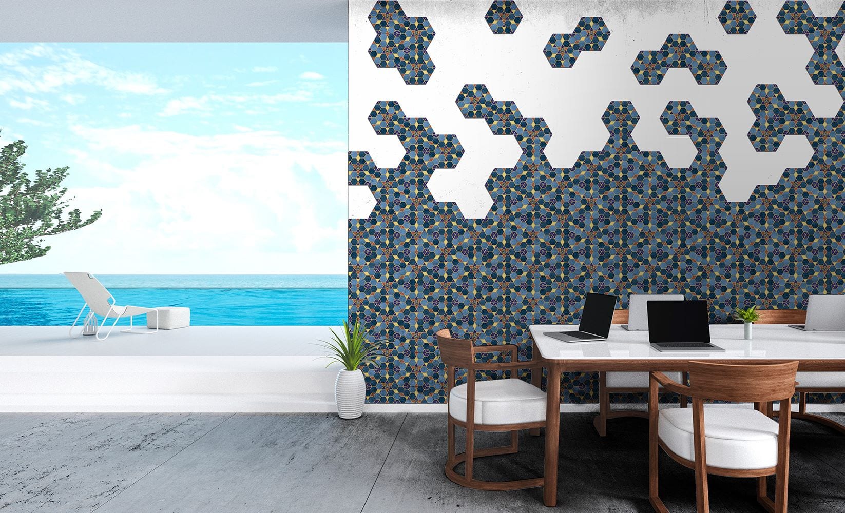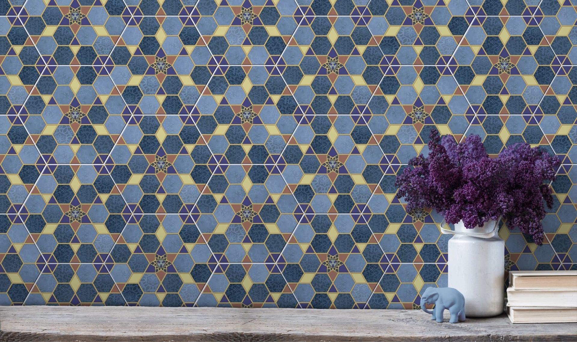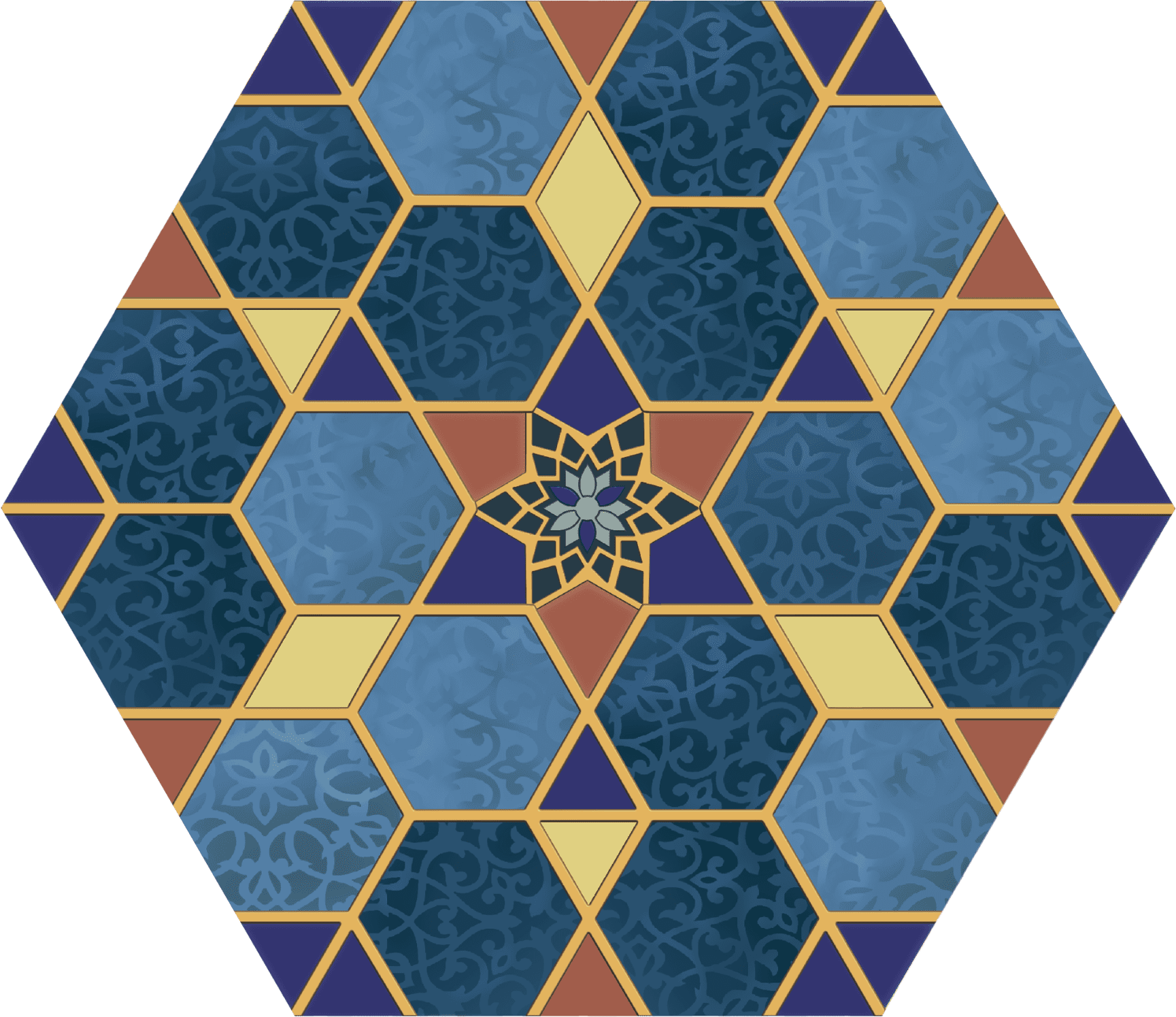 La Série KHALAL est un carrelage grès cérame effet carreau de ciment dans un format 22×25 hexagonal, avec une finition mate