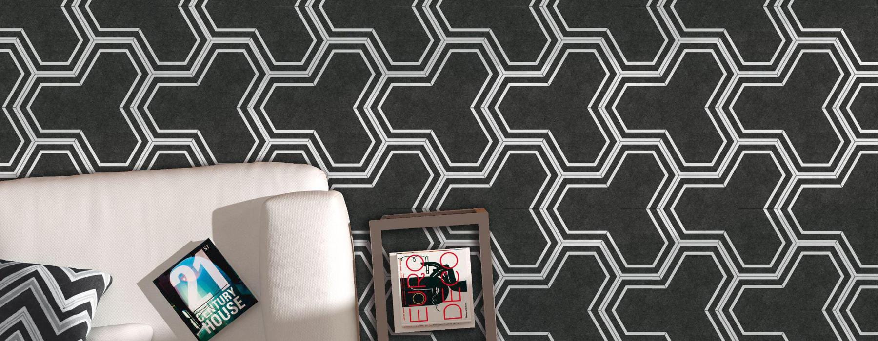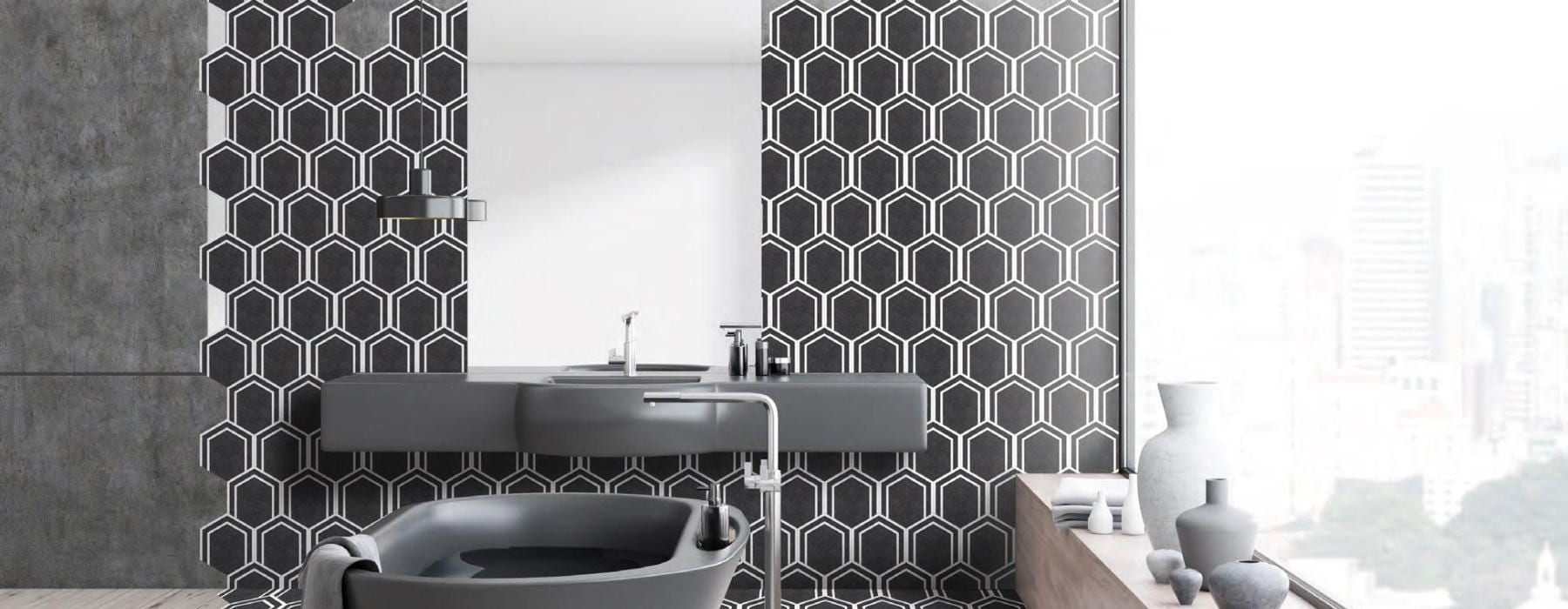 La série LABYRINTH BLACK grès cérame de type carreeau de ciment au format hexagonal 22×25. Finition mate, composé de différents graphiques dans le même modèle, ce qui génère une très belle atmosphère dans son ensemble.