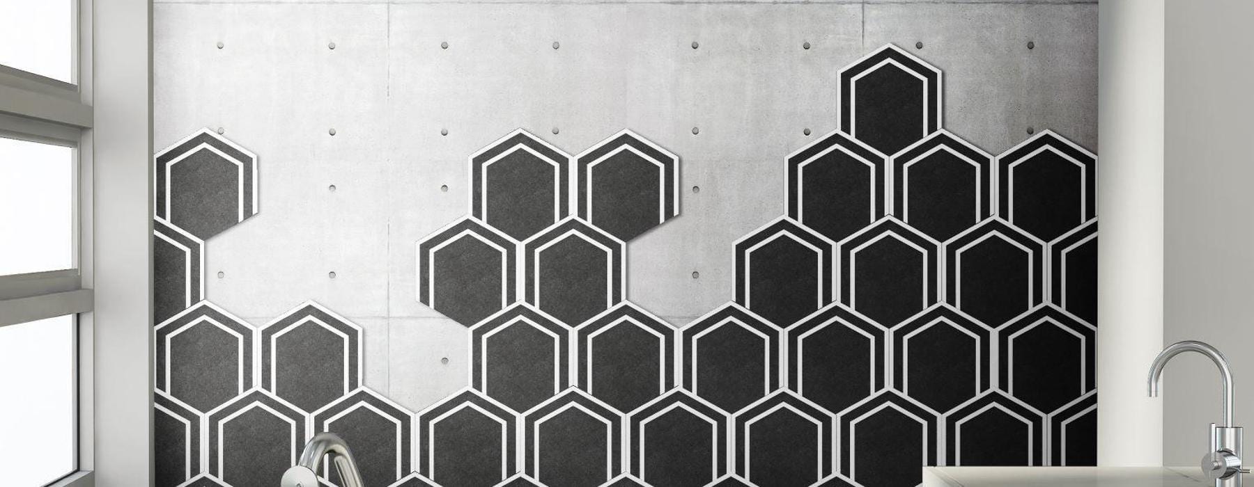 La série LABYRINTH BLACK est un grès cérame de type ciment au format hexagonal 22×25.