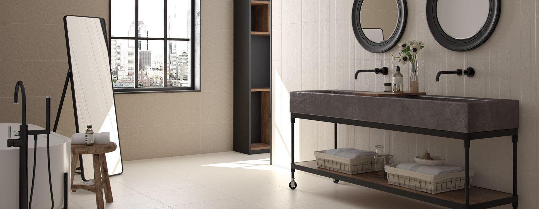 Série LIMESTONE . Carrelage imitation pierre disponible dans les formats: 75×75 (grès cérame), 40×120 (pâte blanche)