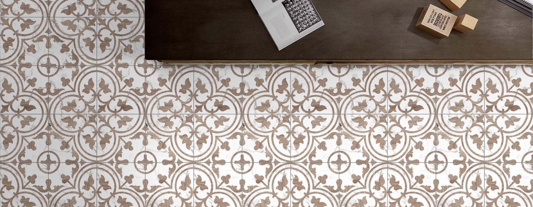 Série LOIRE. Grès cérame de type Carreaux de Ciment au format 25×25, il a une finition mate.