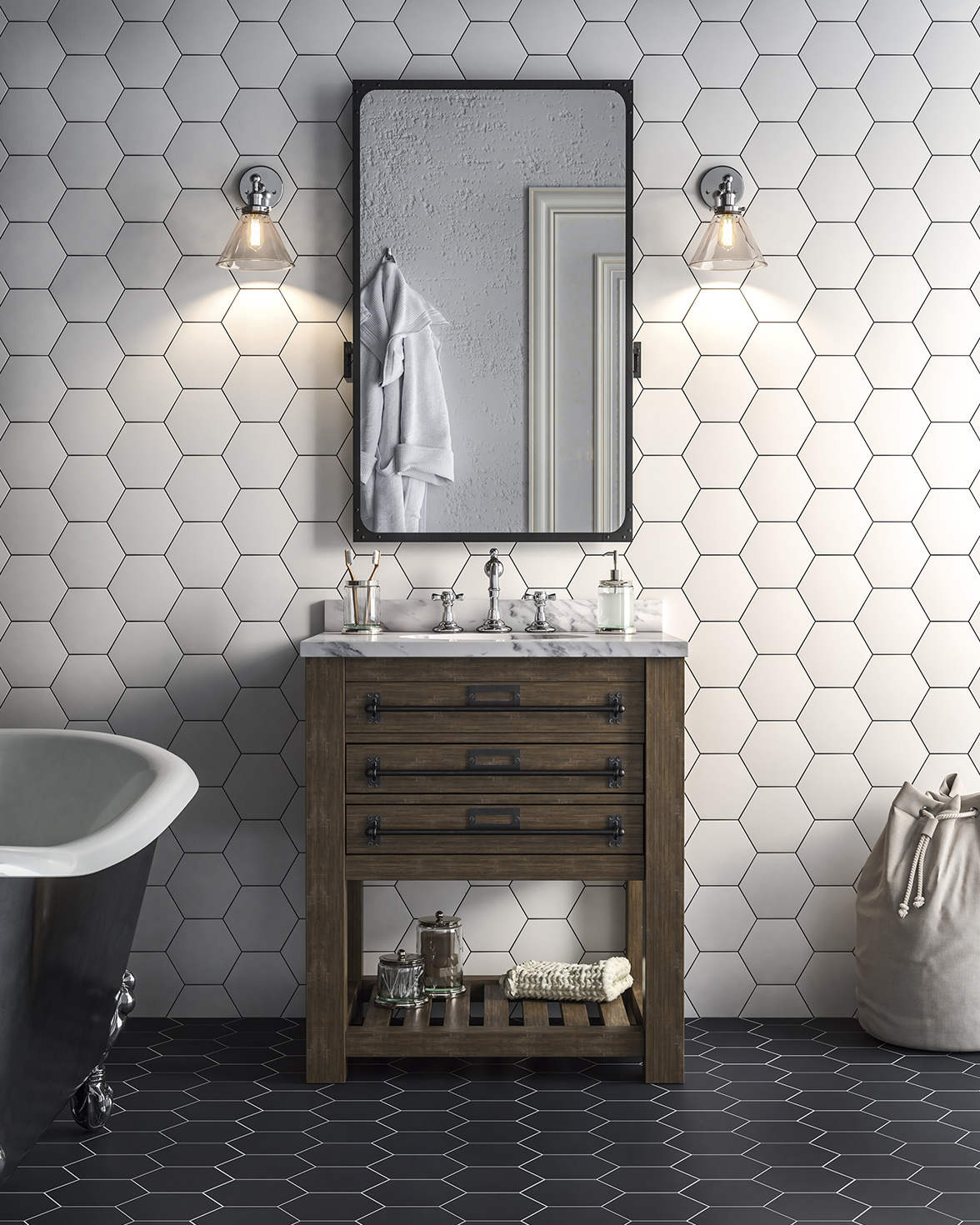 La Série MANHATTAN HEX est un carrelage en grès cérame effet carreau de ciment au format 15×17 hexagonal, avec une finition mate, et disponible en plusieurs couleurs: