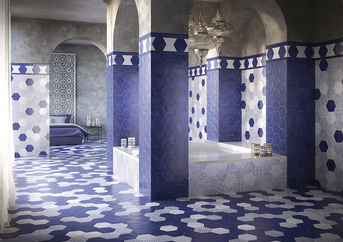 La Série MARRAKECH est un carrelage en pâte rouge effet carreau de ciment en format 15×17 hexagonal, disponible en finition mate et en plusieurs couleurs: