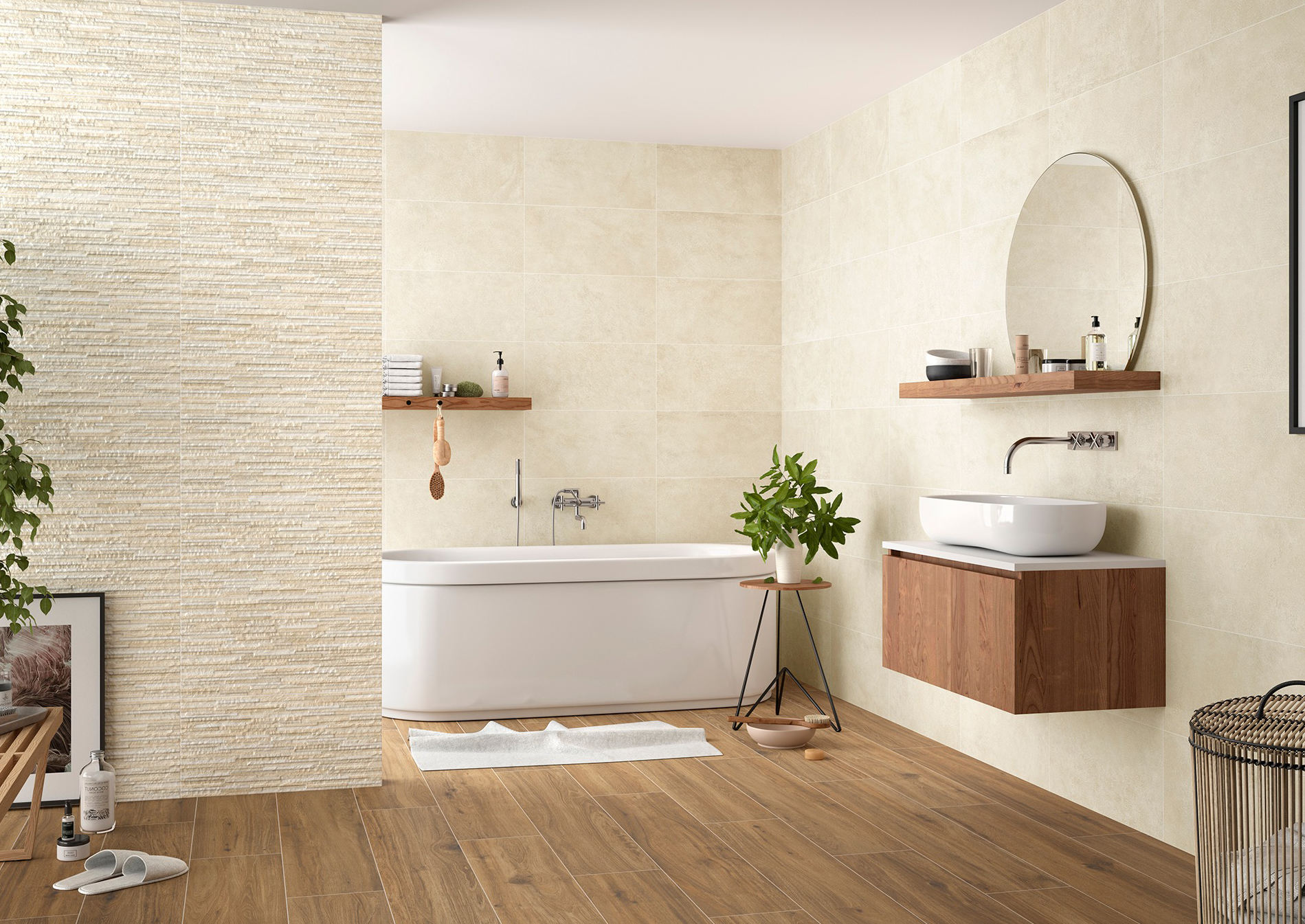 Cette série présente la finition SLIPSTOP, qui convient à la fois aux intérieurs et aux extérieurs grâce à sa texture lisse mais en même temps antidérapante et facile à nettoyer.