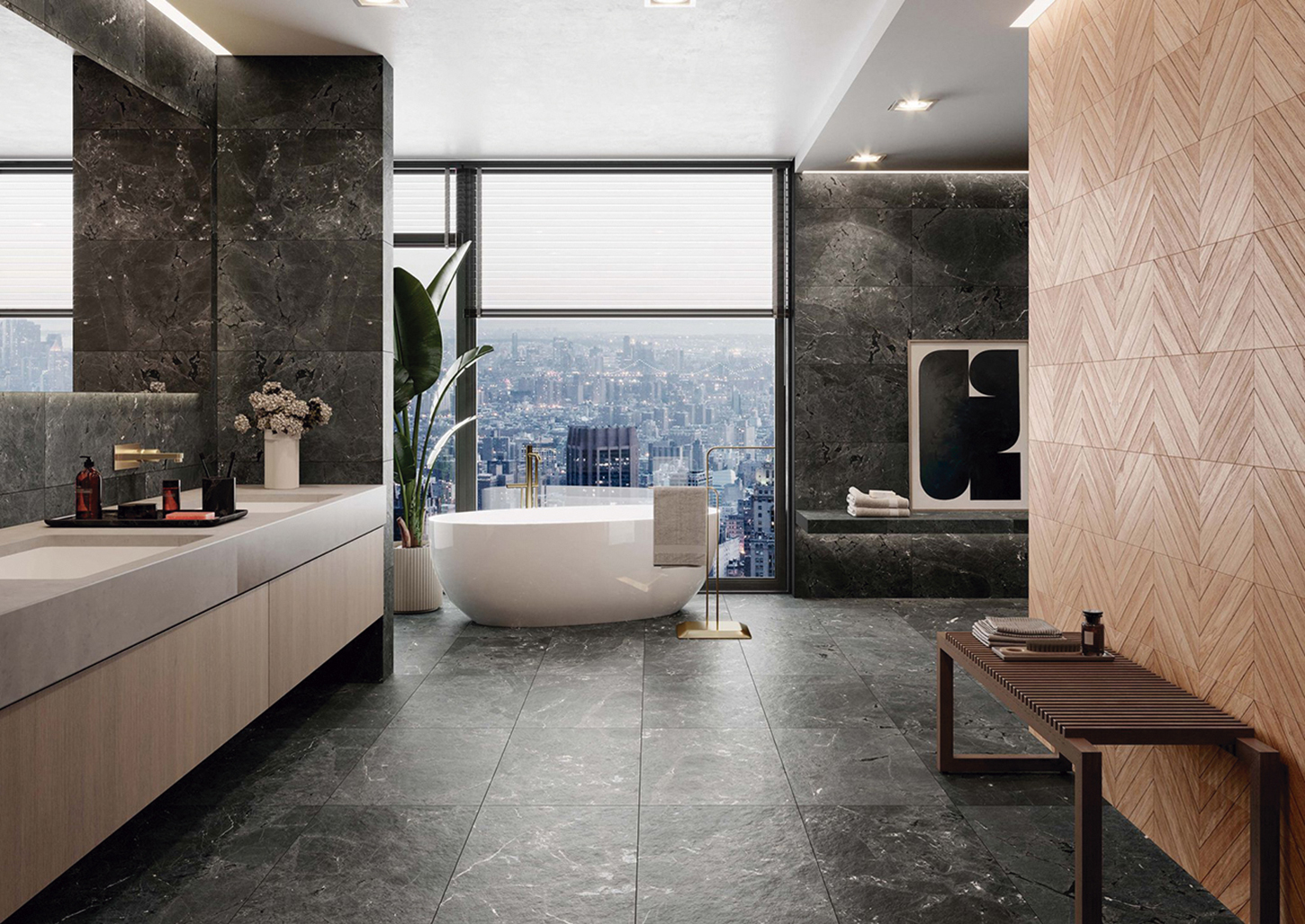 La série Negresco porte la sophistication du marbre noir à un nouveau niveau, combinant son élégance classique avec les innovations technologiques les plus avancées. Ce matériau, emblématique de la décoration intérieure, est réinterprété dans cette collection avec une approche moderne et avant-gardiste. Grâce à la technologie SINK + Special INKJET, les pièces Negresco capturent parfaitement l’essence du marbre, mettant en valeur sa profondeur et sa richesse visuelle.