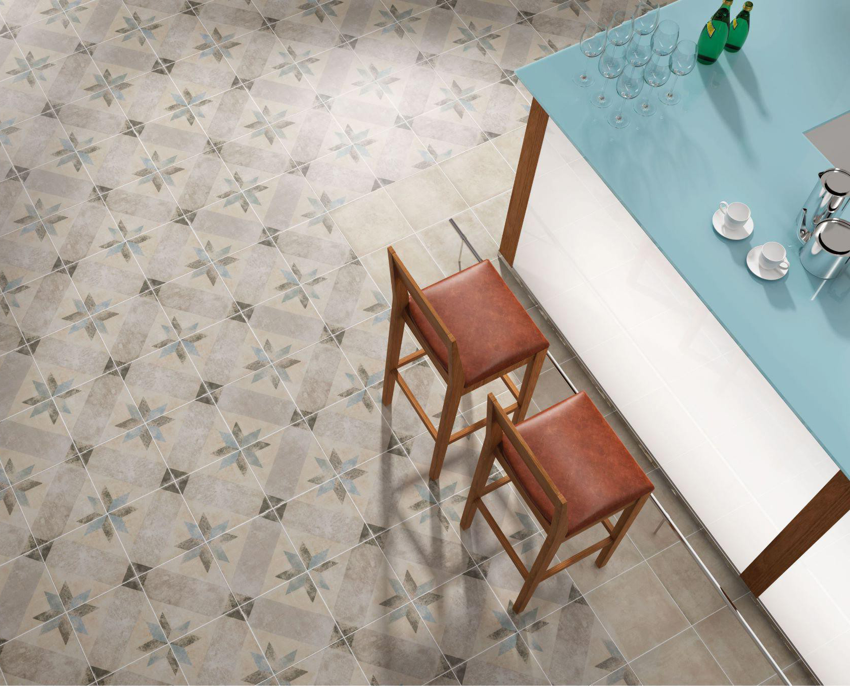 Série POMPEI. carrelage en grès cérame imitation carreaux de ciment au format 25×25, présente une finition mate.