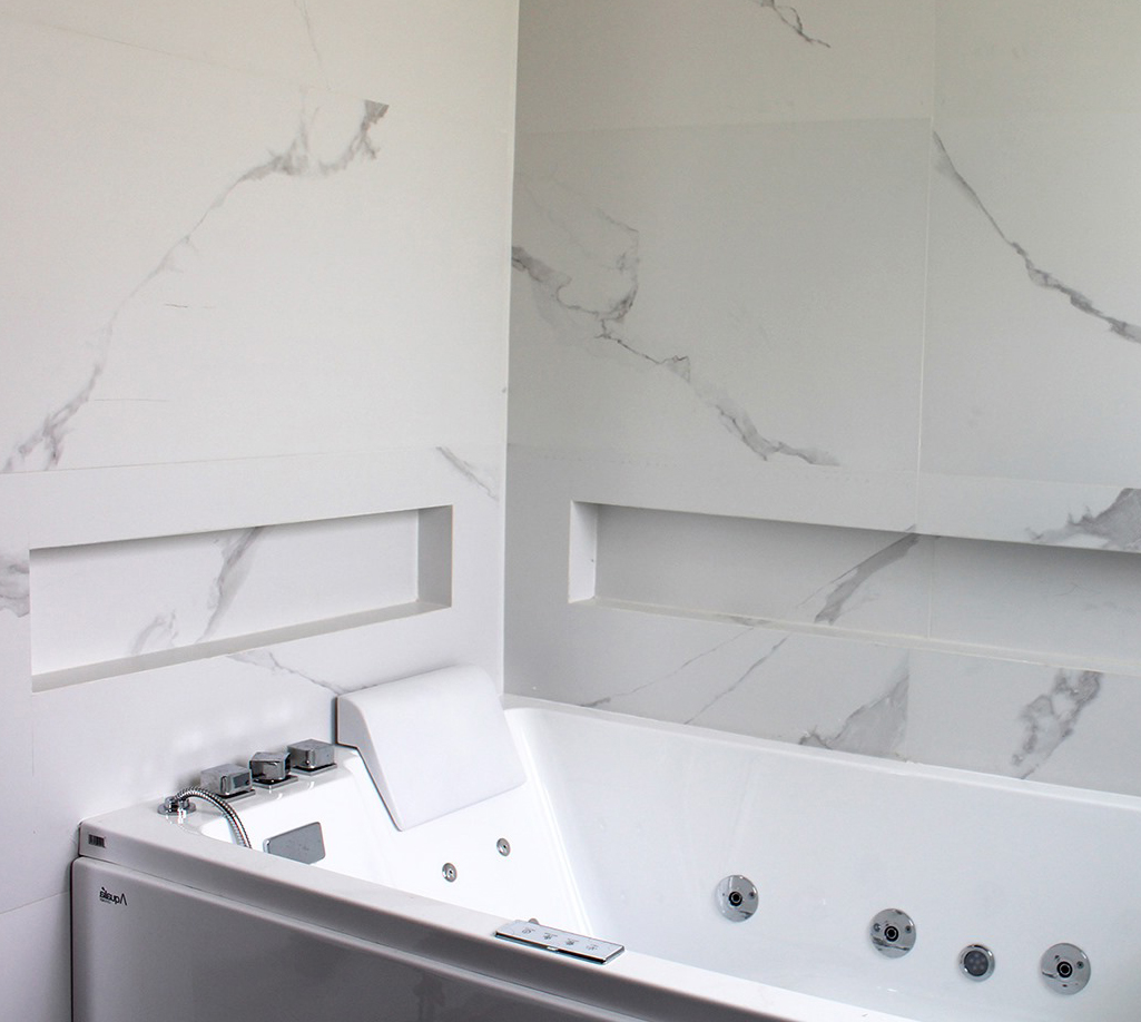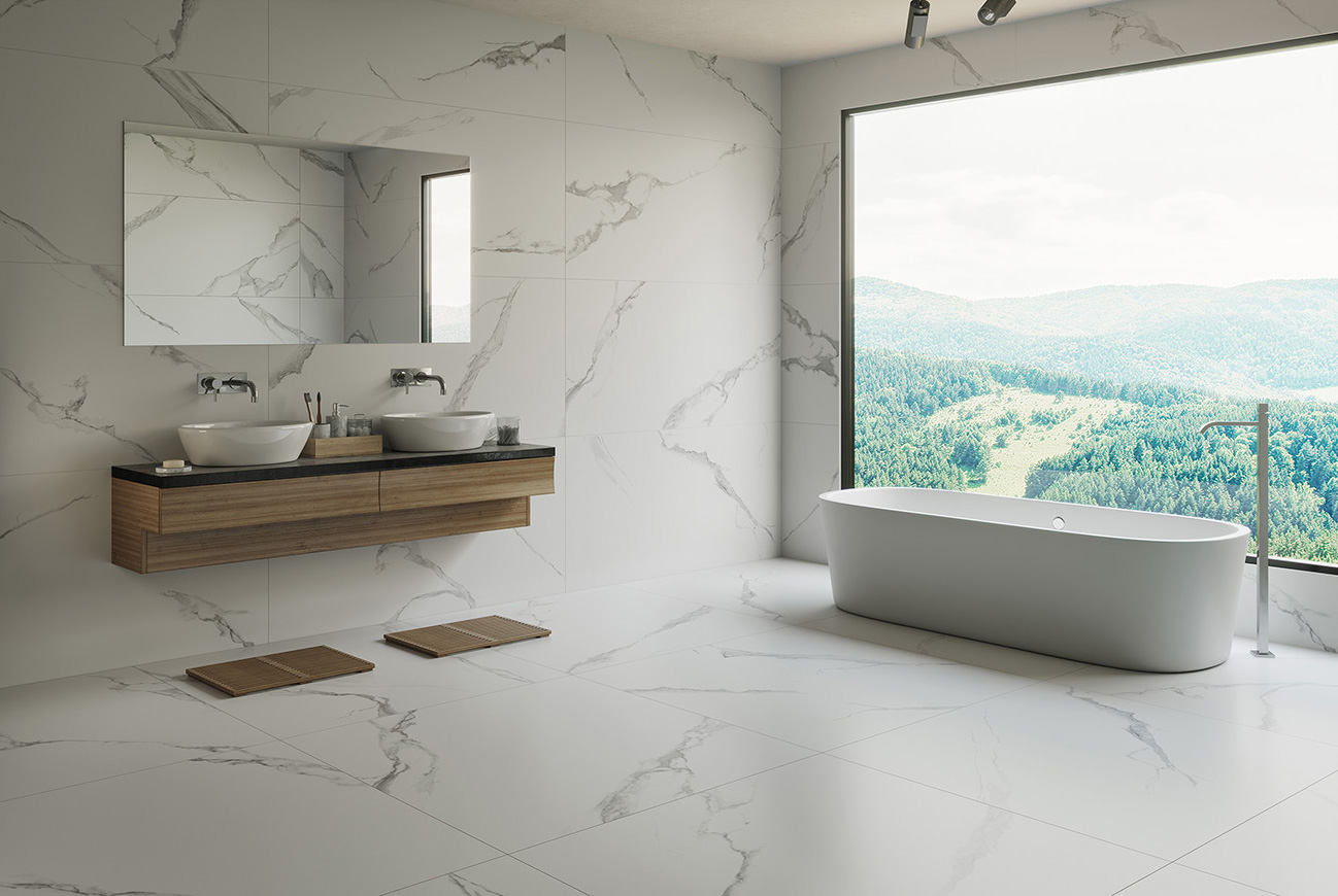 La série PUNE est un carrelage imitation marbre que l’on peut trouver en grès cérame au format rectifié 60×120 avec une finition mate et pour les murs, il a un format 33,3×100 dans un pâte rouge avec une finition mate ou brillante.