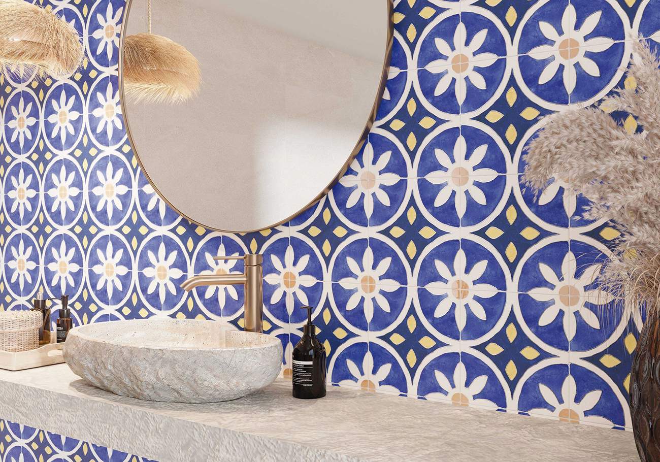 Que ce soit dans les cuisines, les salles de bains ou tout espace nécessitant une touche décorative particulière, Santorini Blue transforme les environnements en lieux pleins de personnalité, capturant la magie et la sérénité de l’île grecque.