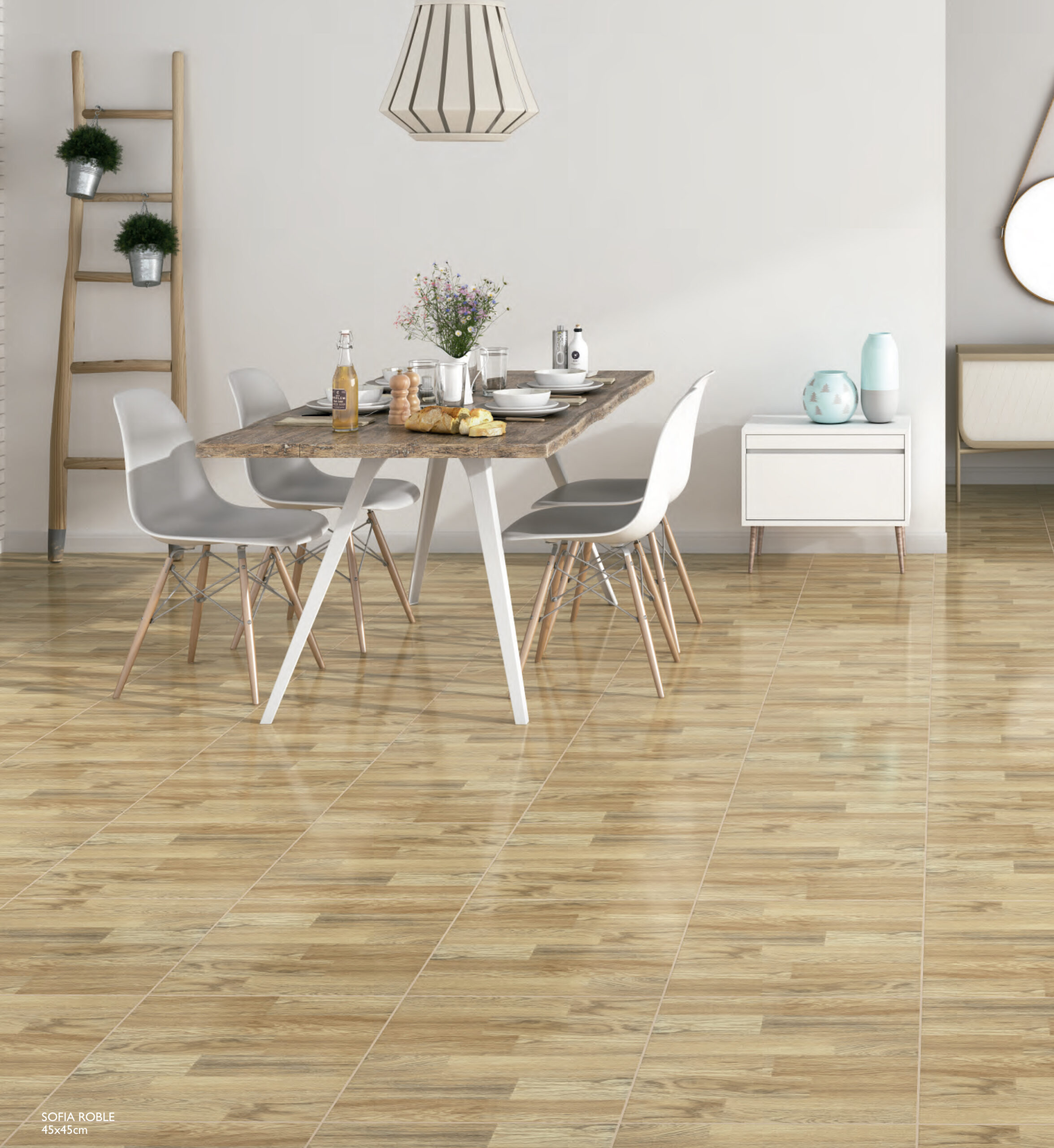 Série SOFIA – bois brillant et mat au format 45×45, disponible en deux couleurs: Roble et Haya (mat).