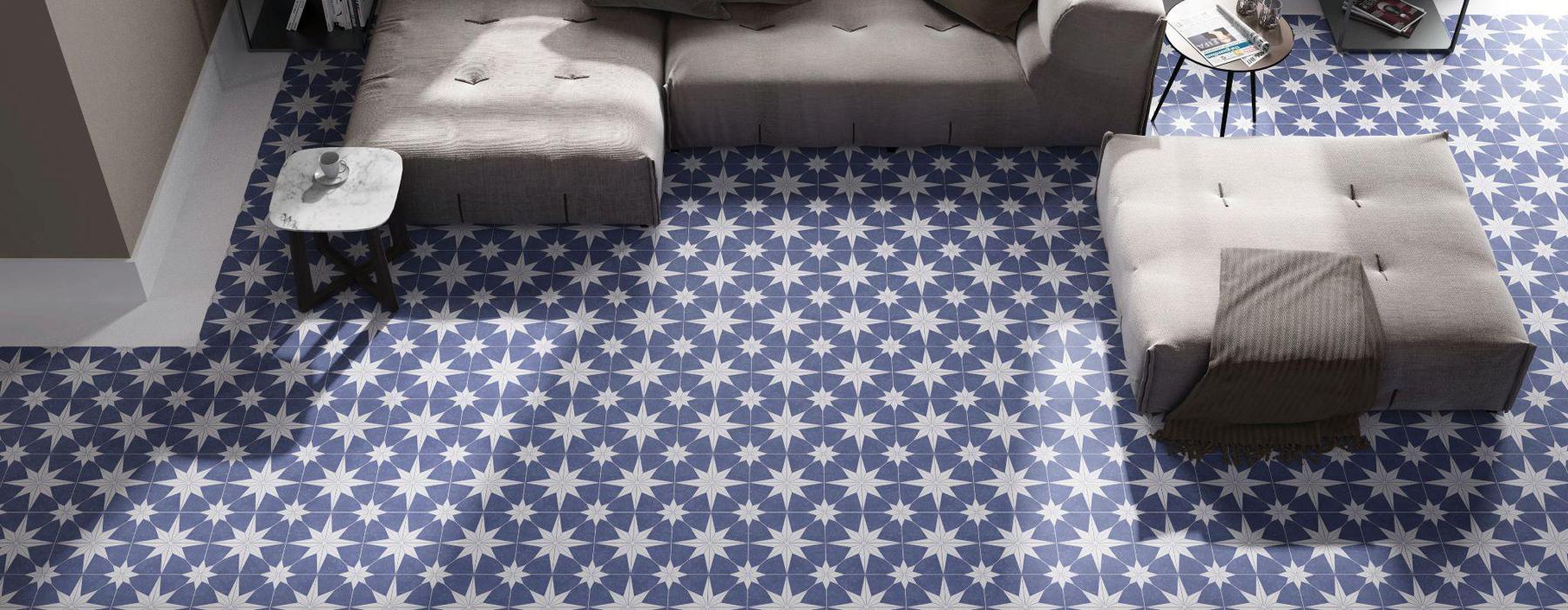 Série STELLA carrelage grès cérame imitation de carreaux de ciment au format 25×25, présente une finition mate.