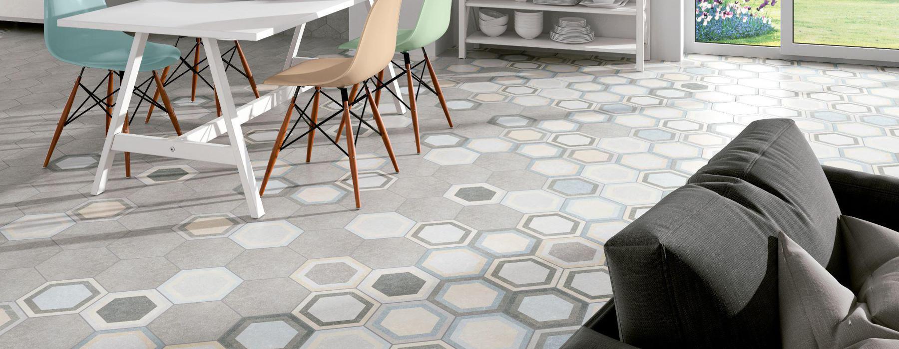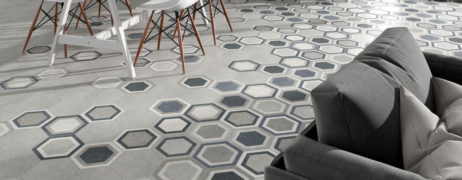 La série TRAFFIC HEX FONTENAY est un grès cérame de type carreau de ciment au format hexagonal 22×25, a une finition mate, disponible en différentes couleurs et décorations pour les assortir.
