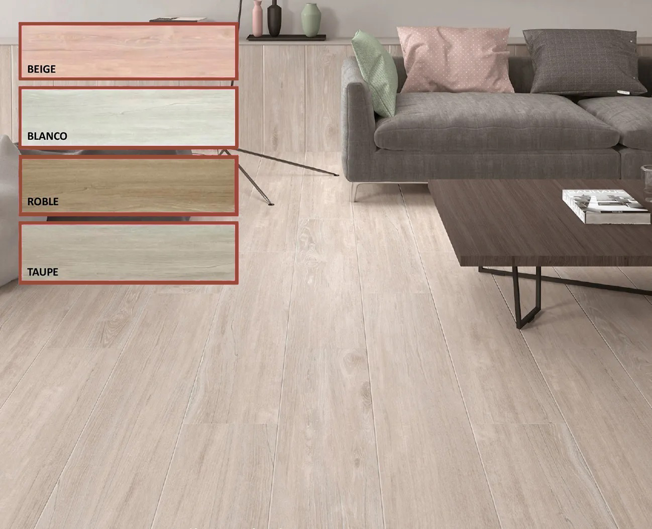 La Série VILEMA est un carrelage en porcelaine imitant le bois avec une finition mate, disponible en format 23×120. Les couleurs de cette série sont : Beig, Blanc, Chêne et Taupe, ce qui en fait l’option idéale pour les rénovations d’espaces intérieurs. De plus, pour les environnements nécessitant une sécurité accrue, la Série VILEMA est également disponible en version antidérapante C3 dans les teintes beige, chêne et taupe. Adaptée pour tous les extérieurs et les zones humides telles que les piscines.