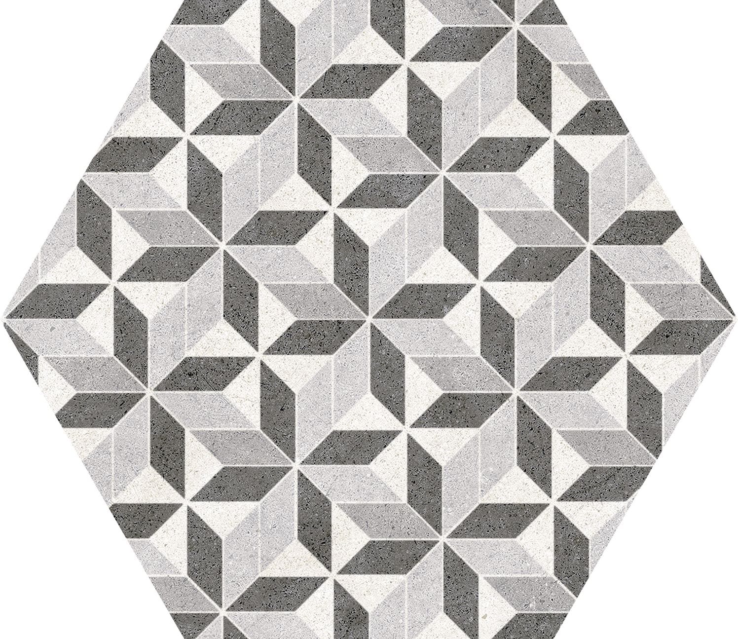 La série VINTAGE ARSENAL MIX HEX est un grès cérame de type ciment au format hexagonal 22×25, a une finition mate et est disponible en deux couleurs différentes et une décoration qui se combine avec n’importe quelle couleur.