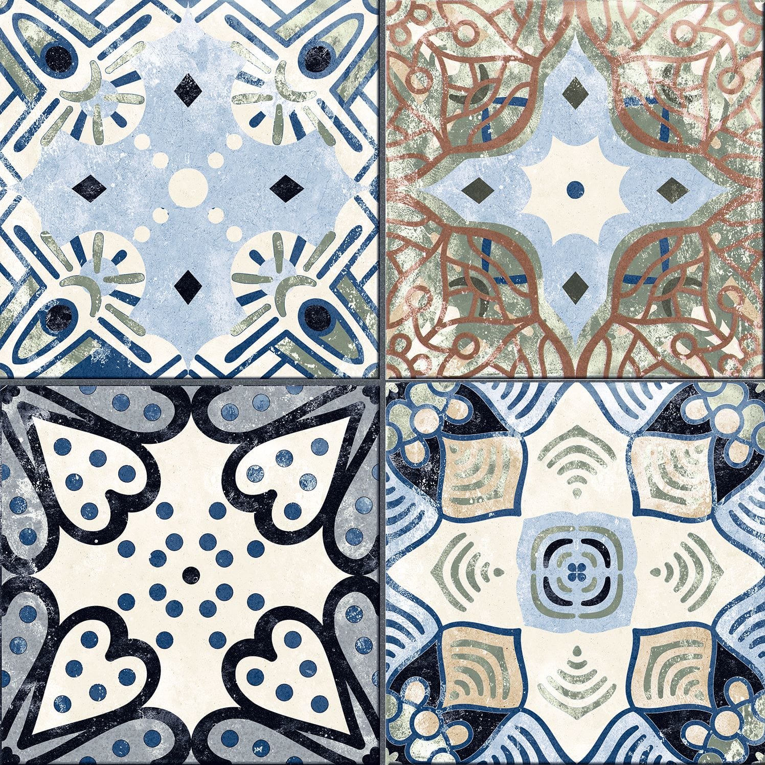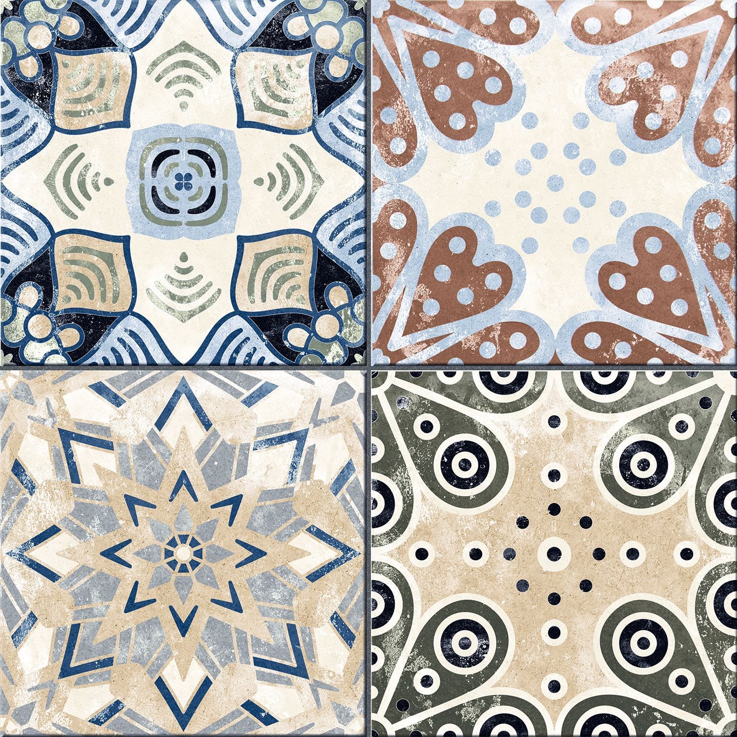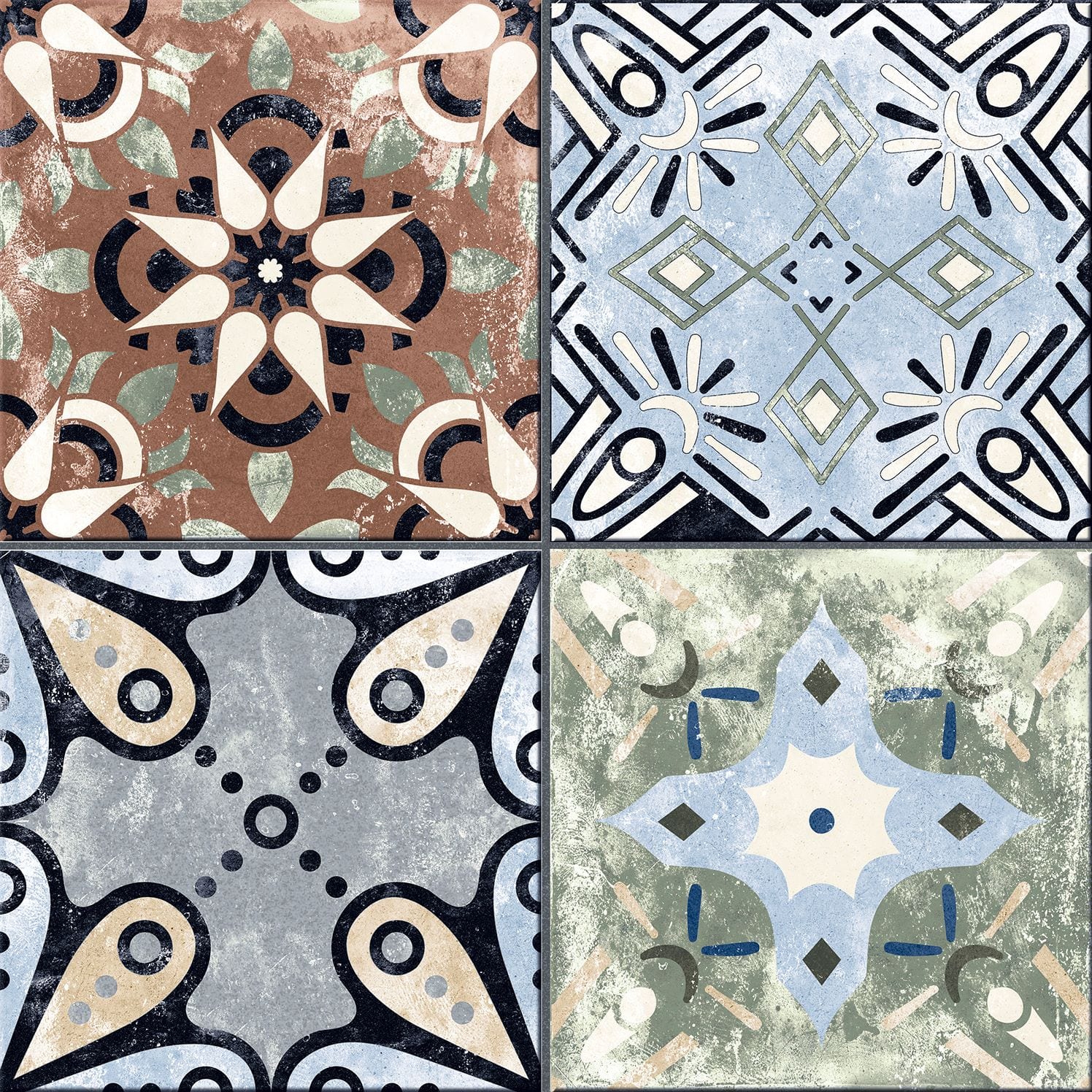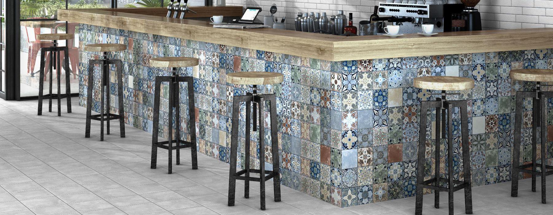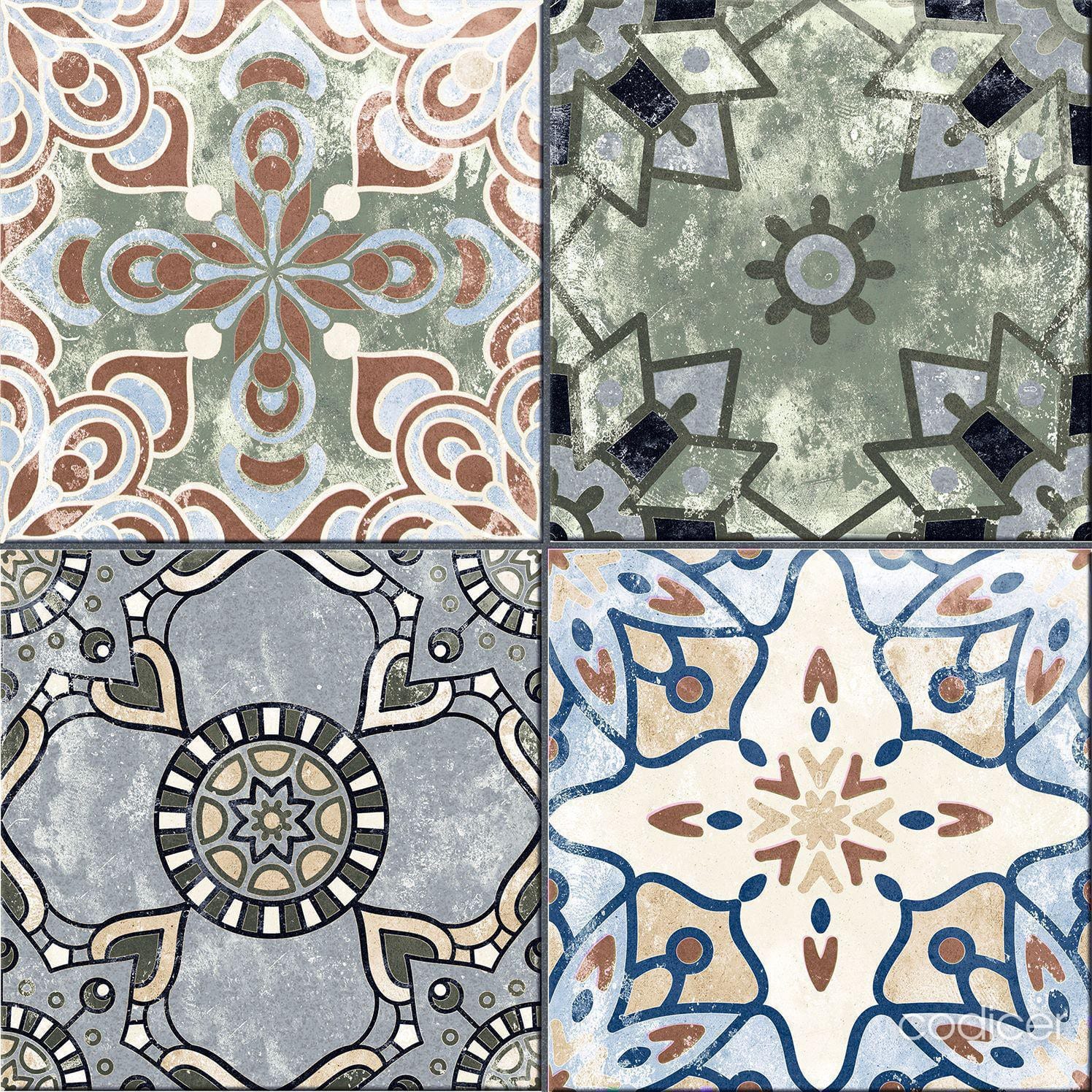 La série XEREA est un carrelage en grès cérame imitation carreaux de ciment au format 25×25 qui a une finition mate. Différents modèles mélangés au hasard dans chaque couleur