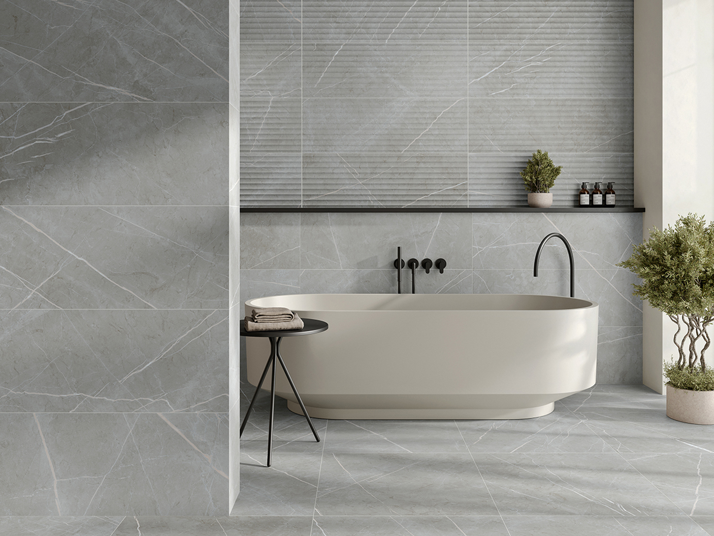Formats : 100×100 cm rectifié Satiné, 60×120 cm rectifié Satiné et Poli.